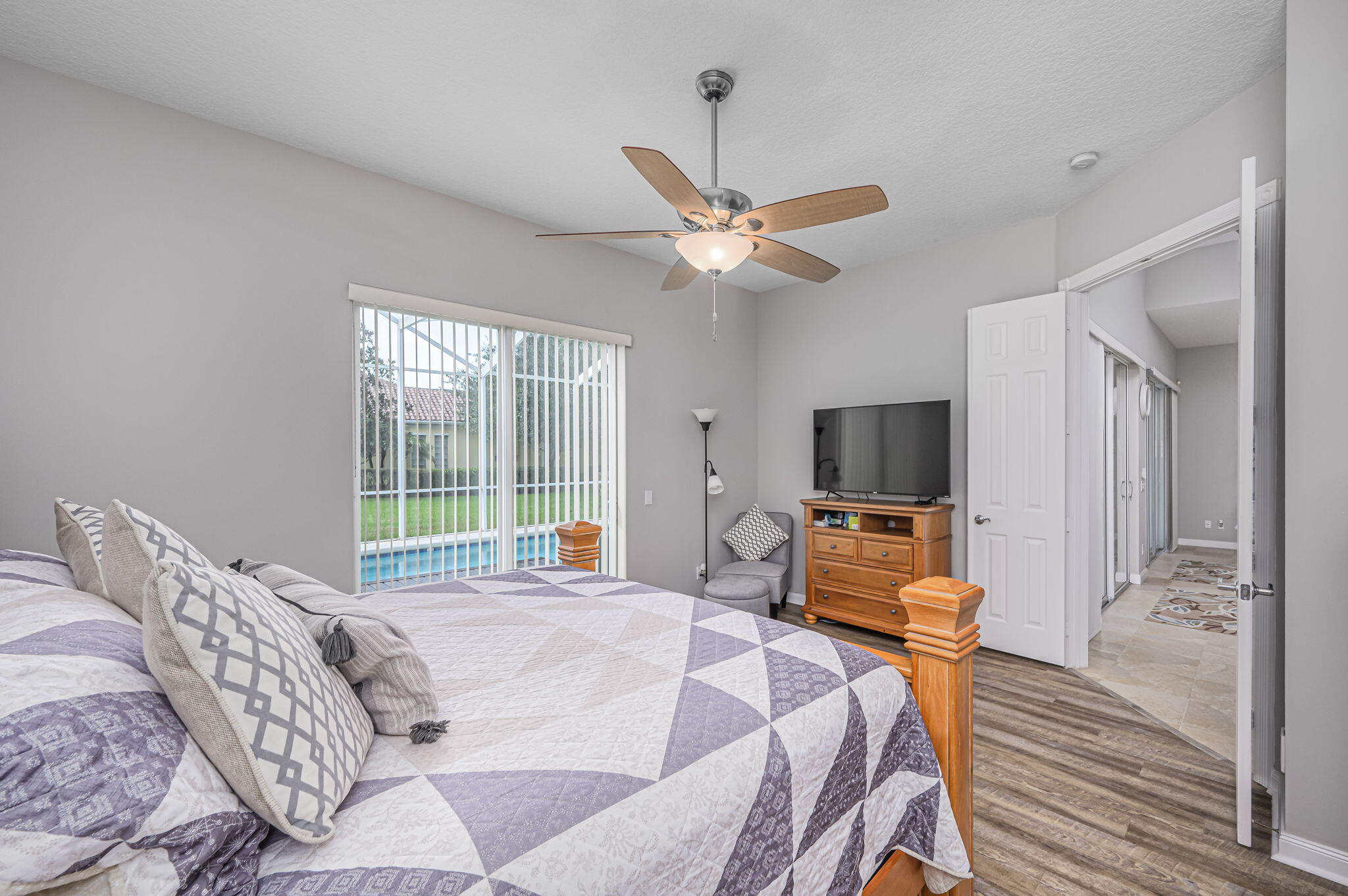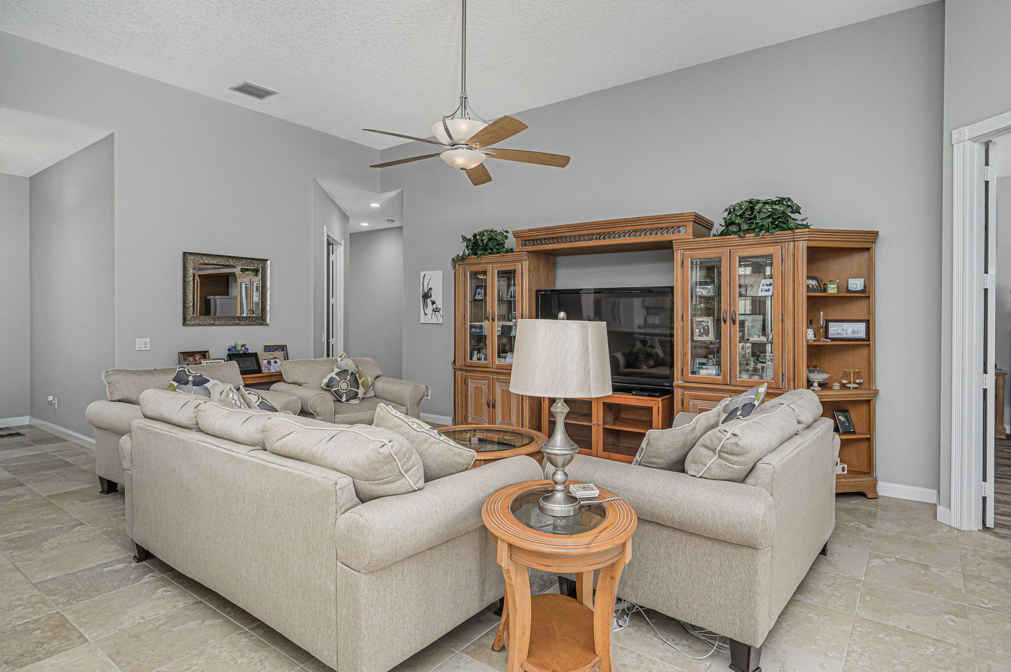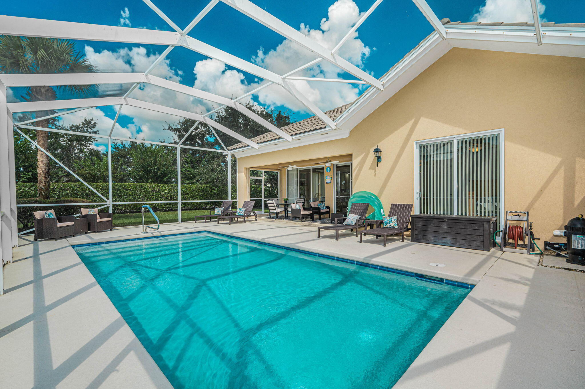 As you enter this welcoming home, you look straight out to the inviting pool and immediately notice how incredibly clean and well-kept this home is. The popular Oakmont floor plan is open, inviting, brings in lots of natural light and features a great room concept with 3 large bedrooms plus a bonus room. The primary suite offers the ultimate bathroom with separate ''his and her'' areas. The Lakes at Tradition is a master planned community, by Divosta, one of Florida's most respected builders. With the tree lined streets, gorgeous tropical preserves, and many lakes, this is a great community to enjoy the outdoors and exercise. From the amenity rich clubhouse to the numerous events and entertainment, Tradition has something for everyone to enjoy. Seller is offering $5000 credit at close.