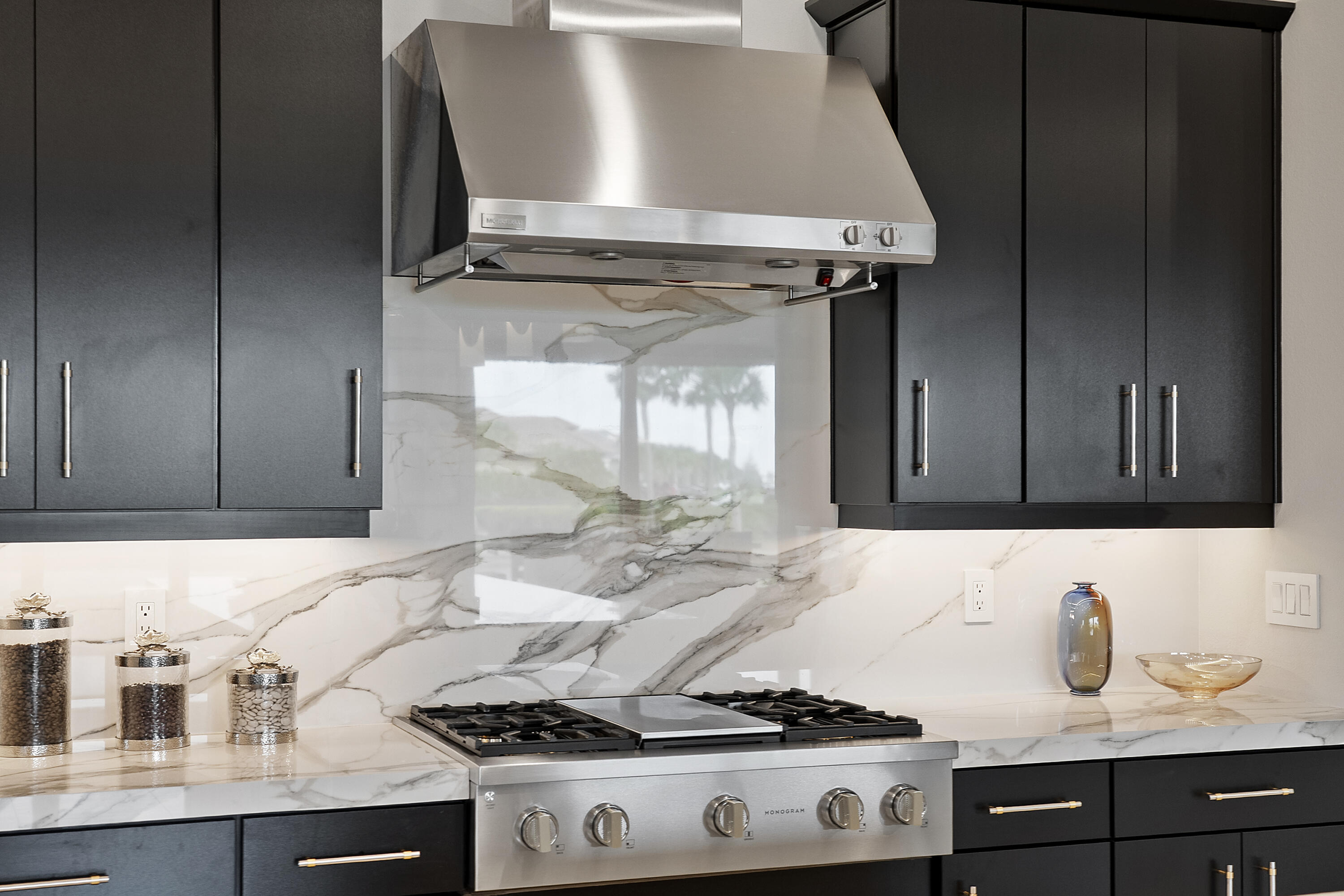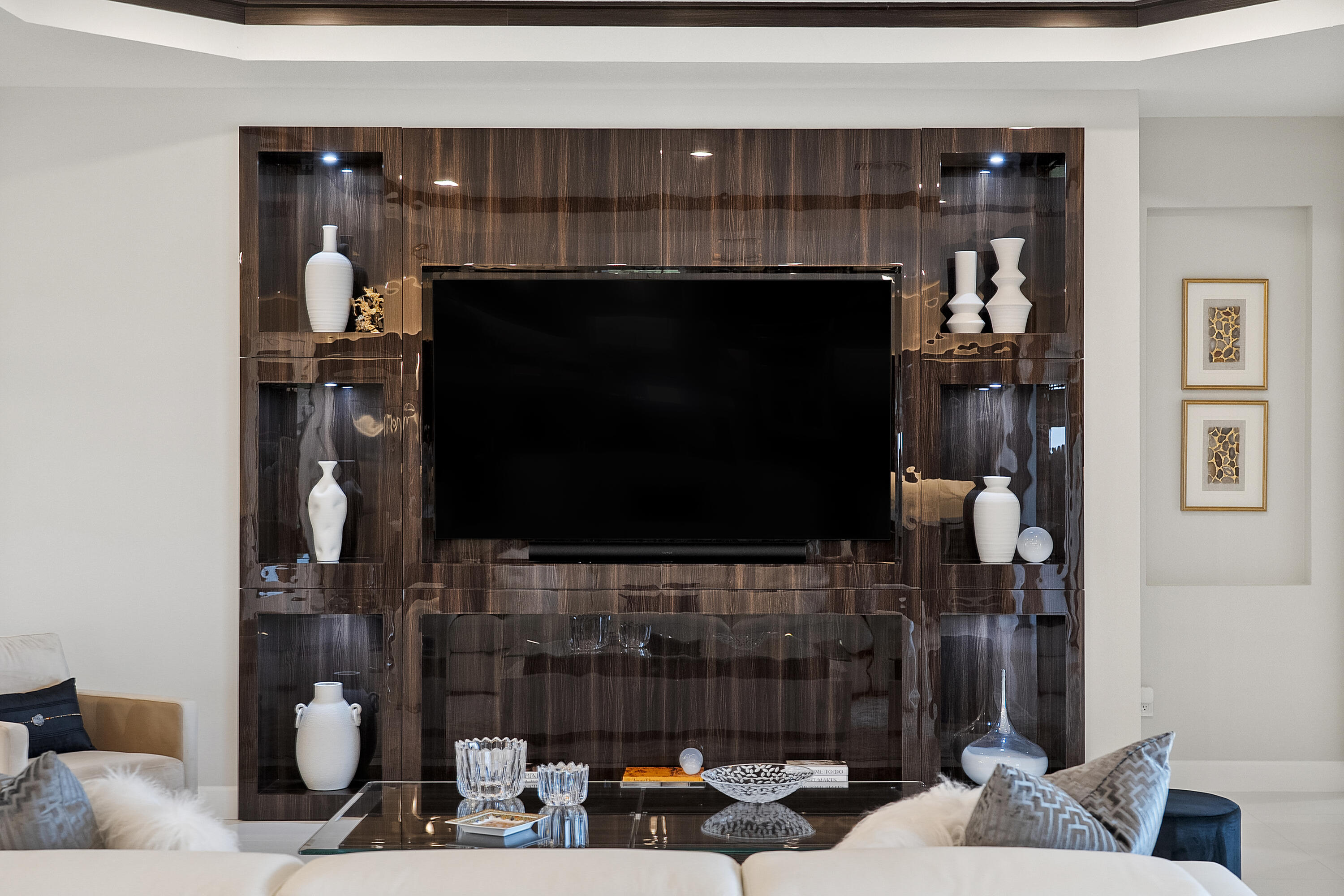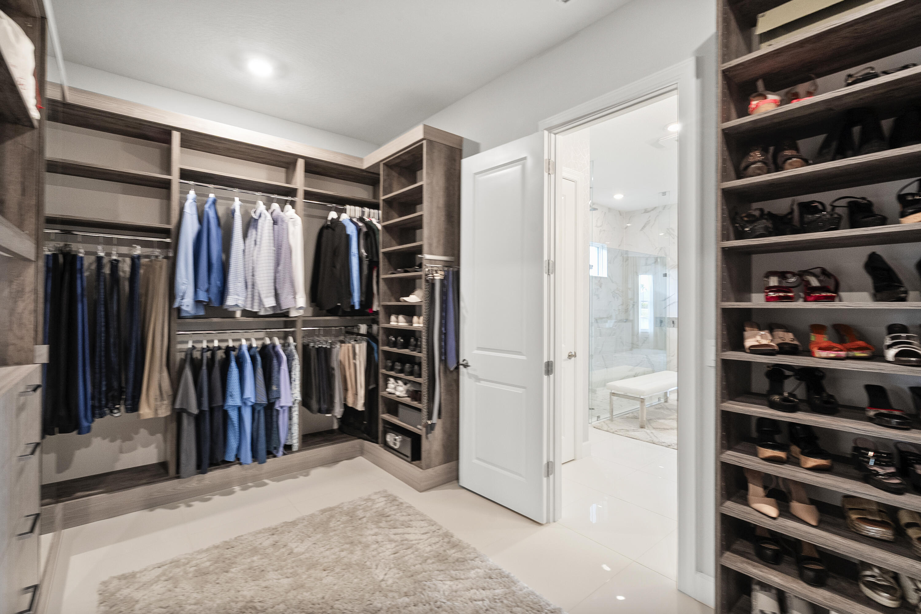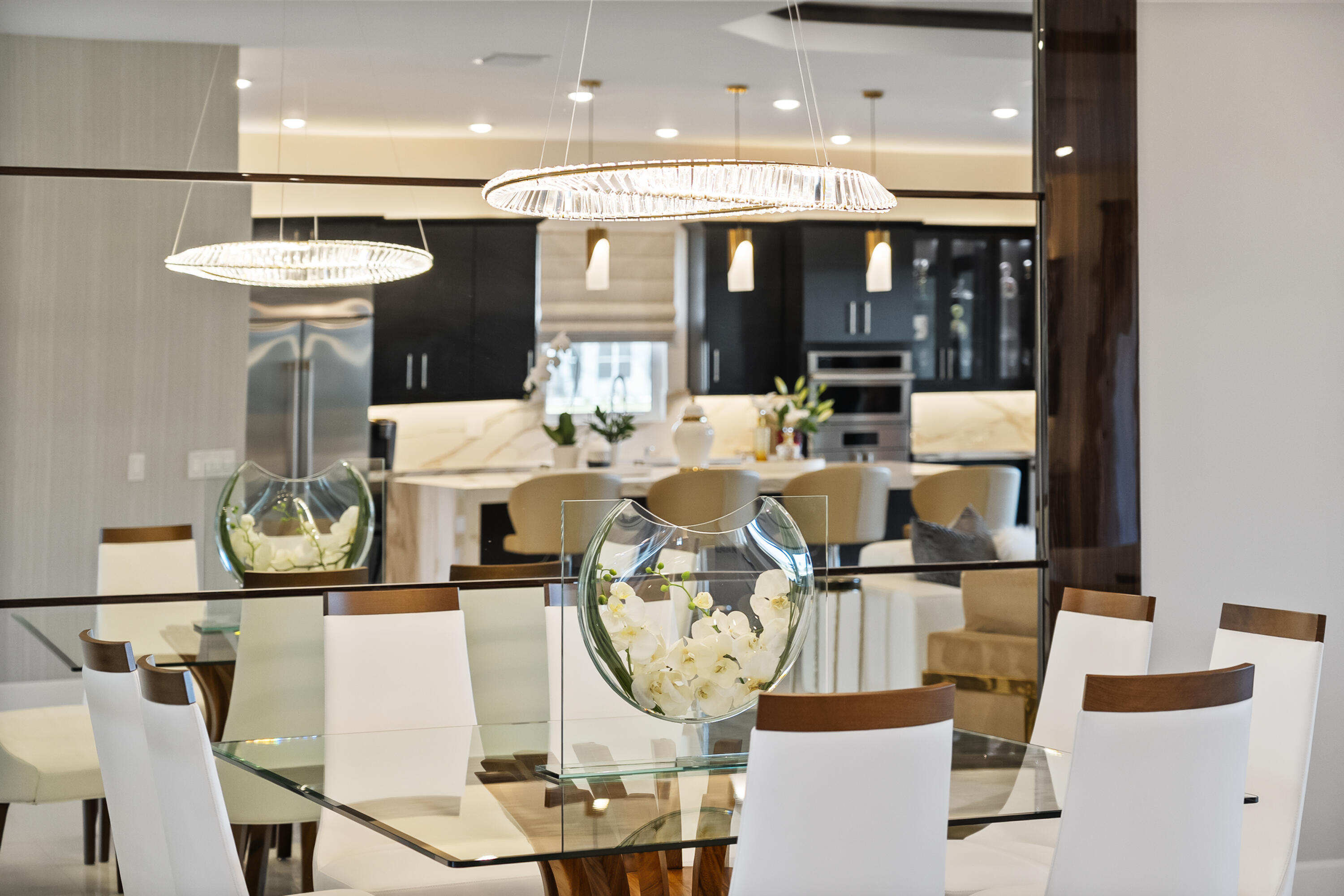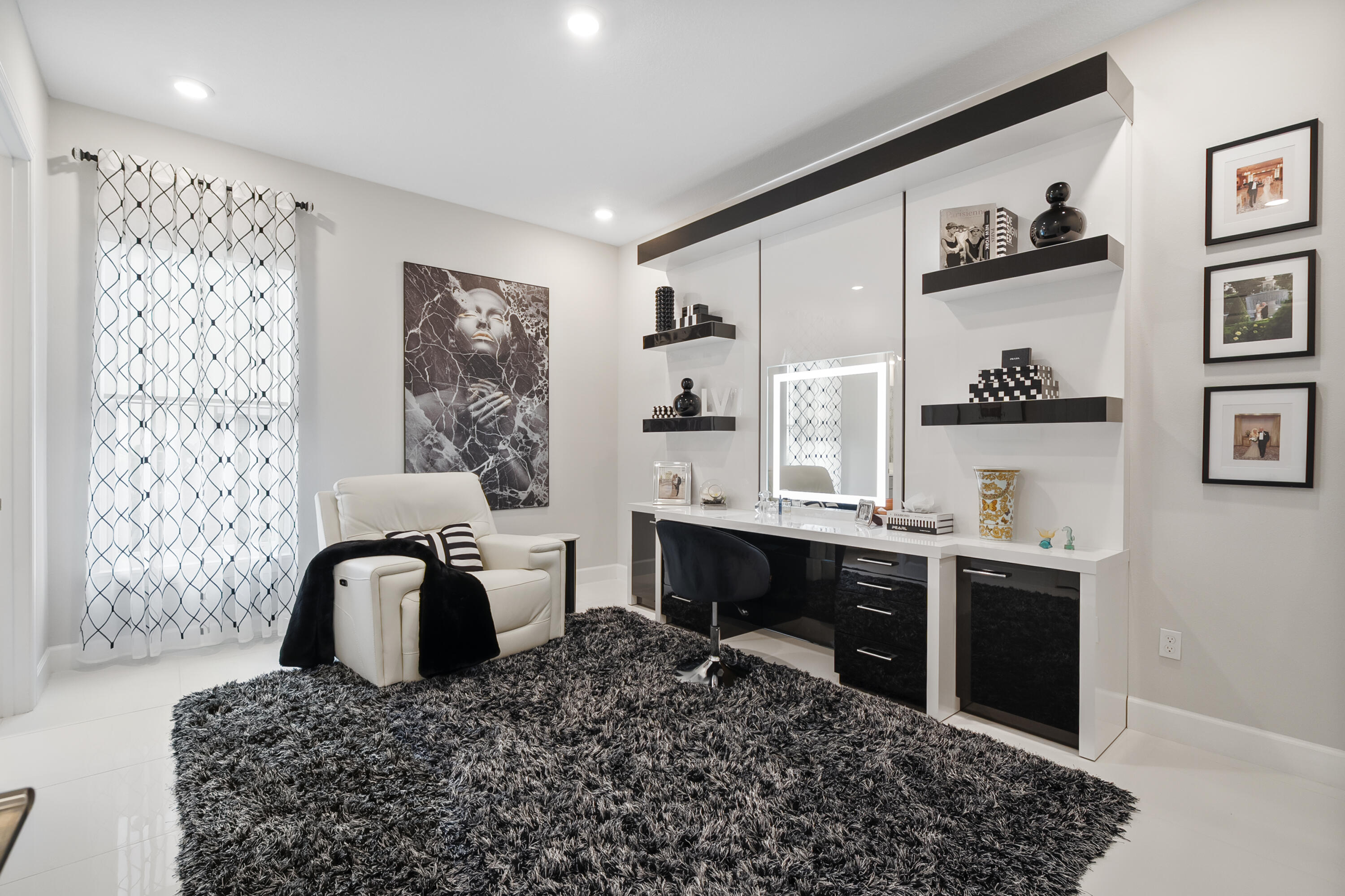 This Pallazio floor plan features extensive post-construction upgrades that go far beyond builder offerings. Offering 3 bedrooms, 3 bathrooms, plus a study/flex space, this exceptional home is situated on a quiet cul-de-sac on an oversized .36-acre pie-shaped lot that widens at the rear and overlooks a serene lake. Structural enhancements include an extended covered lanai, extended gourmet kitchen, outdoor kitchen gas and plumbing rough-ins, and extended bay windows in the primary suite. All impact windows and doors, paired with a brand-new barrel tile roof (2023), provide peace of mind and contribute to lower homeowners insurance rates. Inside, oversized porcelain tile flooring throughout (no carpet) creates a light, airy, and cohesive aesthetic. Professionally designed interiors take take this home to the next level with elevated finishes and thoughtful details throughout. The upgraded extended gourmet kitchen is an entertainer's dream, featuring all Thermador appliances, including a built-in refrigerator and wine fridge. A Thermador gas cooktop with griddle, paired with a custom range hood and built-in wall ovens, adds both function and style. The true showstopper is the 3-inch mitered porcelain countertops, a premium feature not offered by the builder, anchored by a striking waterfall island. The living room showcases a custom acrylic wood-finish built-in with integrated lighting. Pocket sliding glass doors seamlessly blend indoor and outdoor living, opening to lake views and an extended lanai equipped with motorized roll-down screens on all three openings, controlled at the touch of a button. The primary suite is nothing short of spectacular, enhanced by the bay window extension that floods the space with natural light and creates a private sitting area. The spa-like primary bath features dual shower heads, and the custom-designed walk-in closet is truly ready for your Chanel. This home offers a rare combination of design, upgrades, location, and lifestyle. A must-see for buyers seeking refined luxury and effortless indoor/outdoor living.