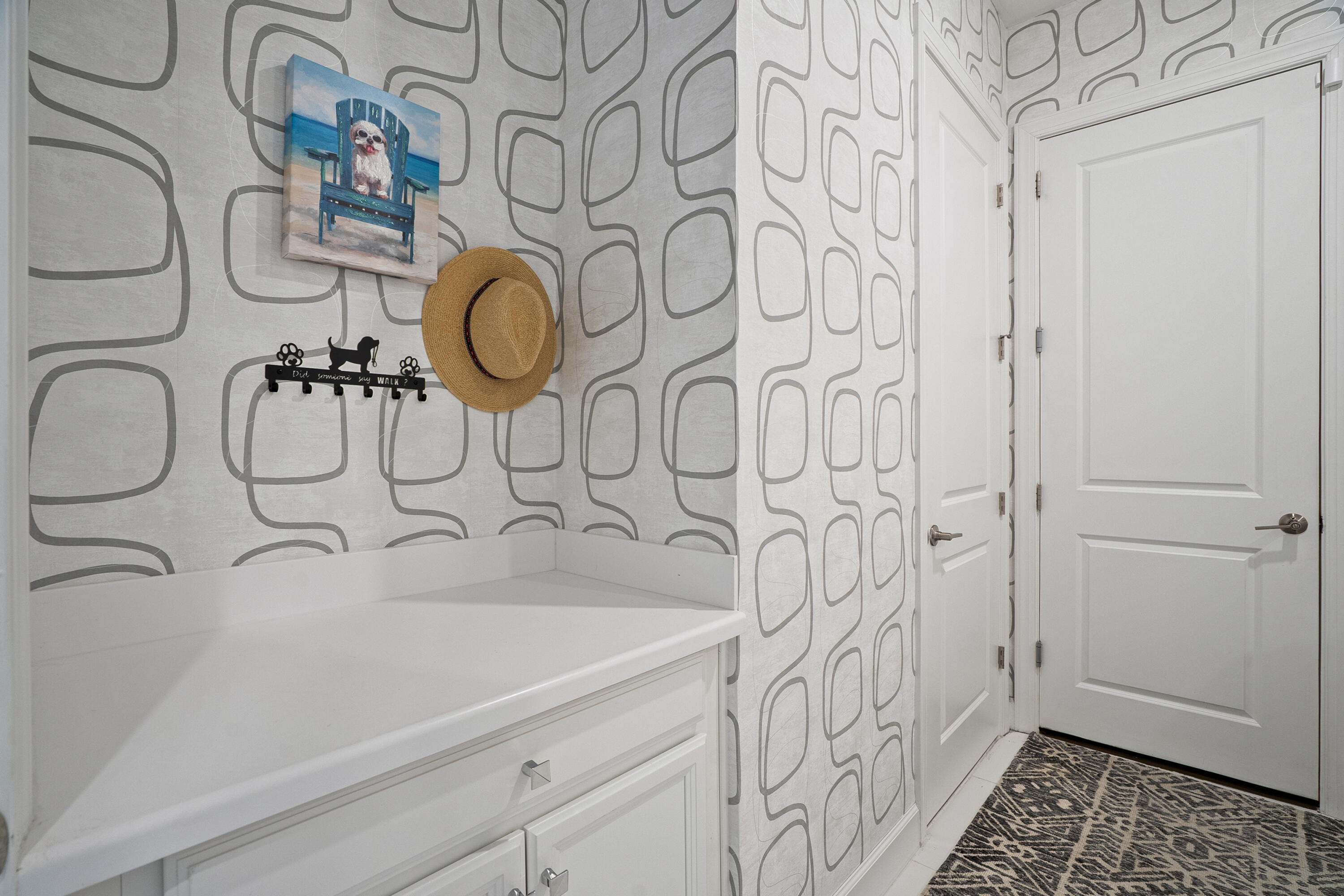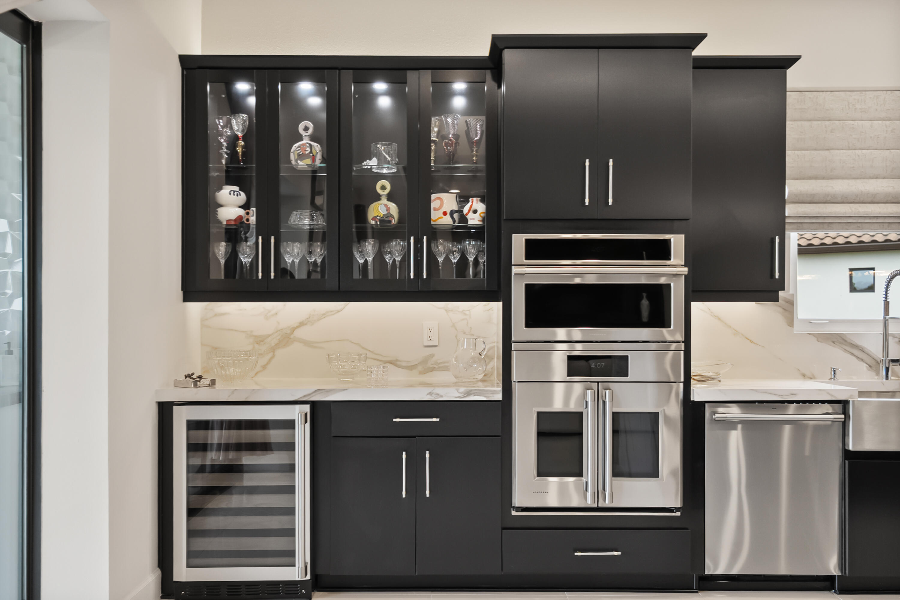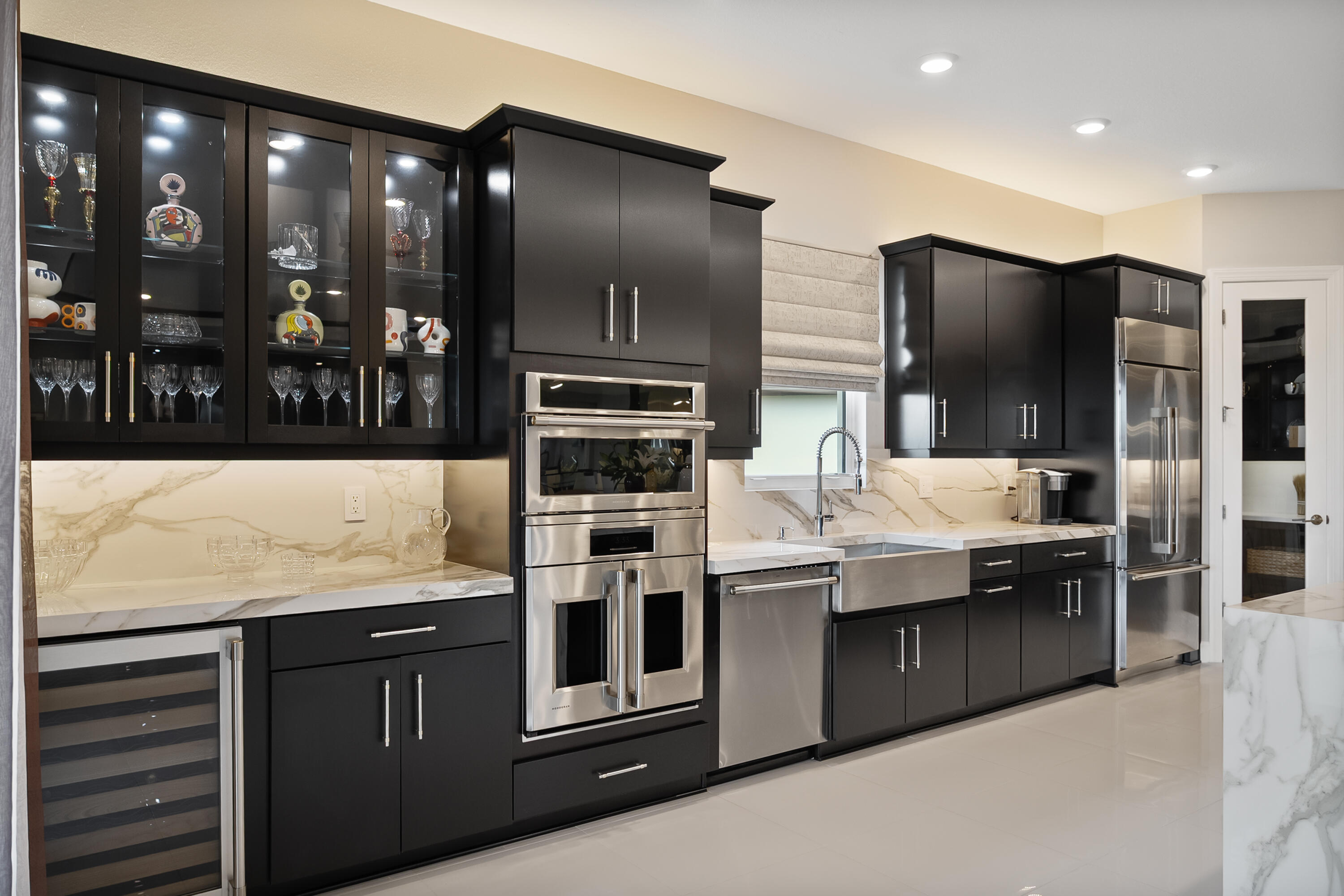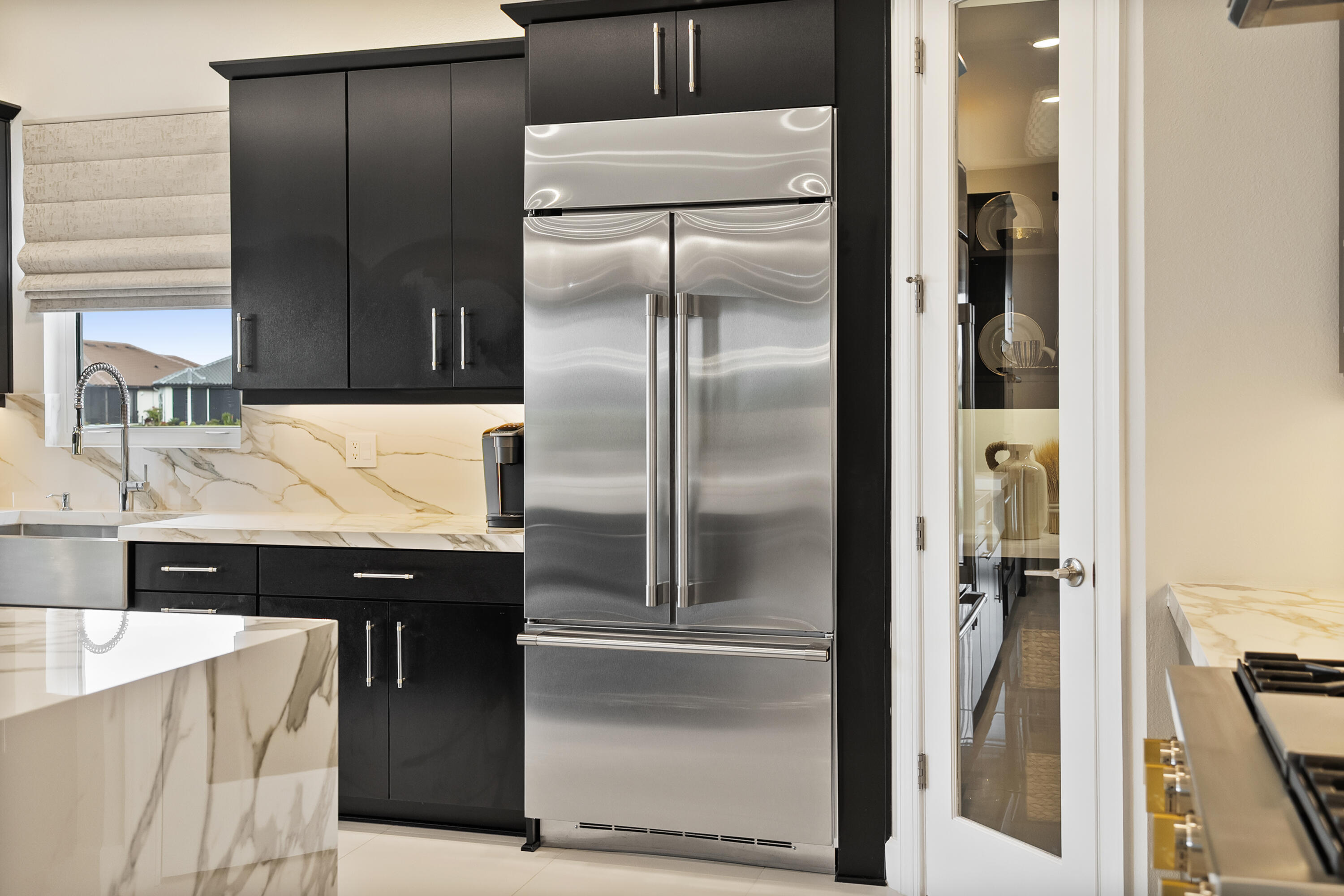 This Pallazio floor plan features extensive post-construction upgrades that go far beyond builder offerings. Offering 3 bedrooms, 3 bathrooms, plus a study/flex space, this exceptional home is situated on a quiet cul-de-sac on an oversized .36-acre pie-shaped lot that widens at the rear and overlooks a serene lake. Structural enhancements include an extended covered lanai, extended gourmet kitchen, outdoor kitchen gas and plumbing rough-ins, and extended bay windows in the primary suite. All impact windows and doors, paired with a brand-new barrel tile roof (2023), provide peace of mind and contribute to lower homeowners insurance rates. Inside, oversized porcelain tile flooring throughout (no carpet) creates a light, airy, and cohesive aesthetic. Professionally designed interiors take take this home to the next level with elevated finishes and thoughtful details throughout. The upgraded extended gourmet kitchen is an entertainer's dream, featuring all Thermador appliances, including a built-in refrigerator and wine fridge. A Thermador gas cooktop with griddle, paired with a custom range hood and built-in wall ovens, adds both function and style. The true showstopper is the 3-inch mitered porcelain countertops, a premium feature not offered by the builder, anchored by a striking waterfall island. The living room showcases a custom acrylic wood-finish built-in with integrated lighting. Pocket sliding glass doors seamlessly blend indoor and outdoor living, opening to lake views and an extended lanai equipped with motorized roll-down screens on all three openings, controlled at the touch of a button. The primary suite is nothing short of spectacular, enhanced by the bay window extension that floods the space with natural light and creates a private sitting area. The spa-like primary bath features dual shower heads, and the custom-designed walk-in closet is truly ready for your Chanel. This home offers a rare combination of design, upgrades, location, and lifestyle. A must-see for buyers seeking refined luxury and effortless indoor/outdoor living.