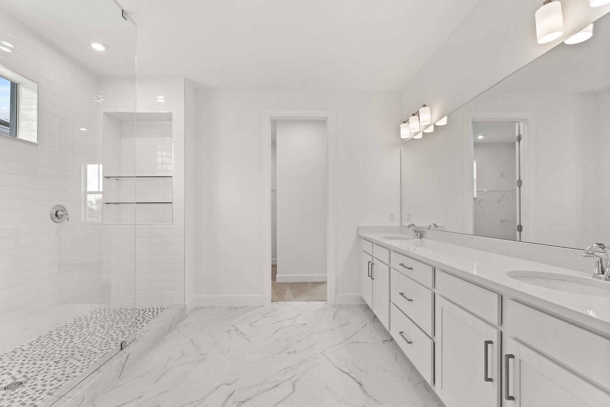 The 3,466 square foot Palacio floorplan offers versatile, thoughtfully designed space in a pleasant configuration of shared and private living areas. The first floor has its own additional bedroom with a full bath and dual sinks in addition to a flex room and large, combined Great Room, dining room and kitchen with breakfast bar. Upstairs, a large loft makes for excellent gathering space. The large, private owner's suite has two walk-in closets. Bedrooms 2 and 3 also have walk-in closets, and an adjacent full bath with dual sinks.