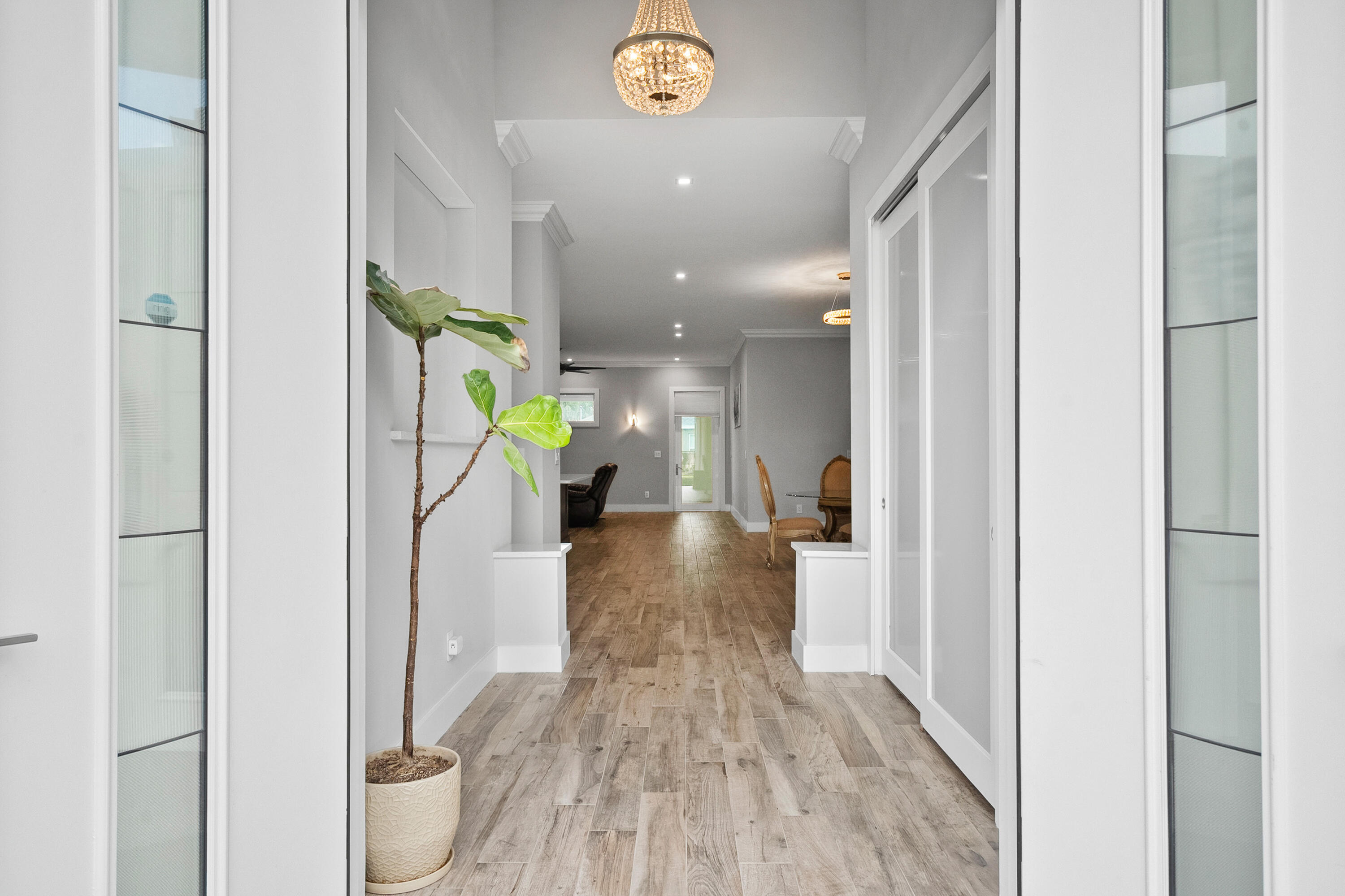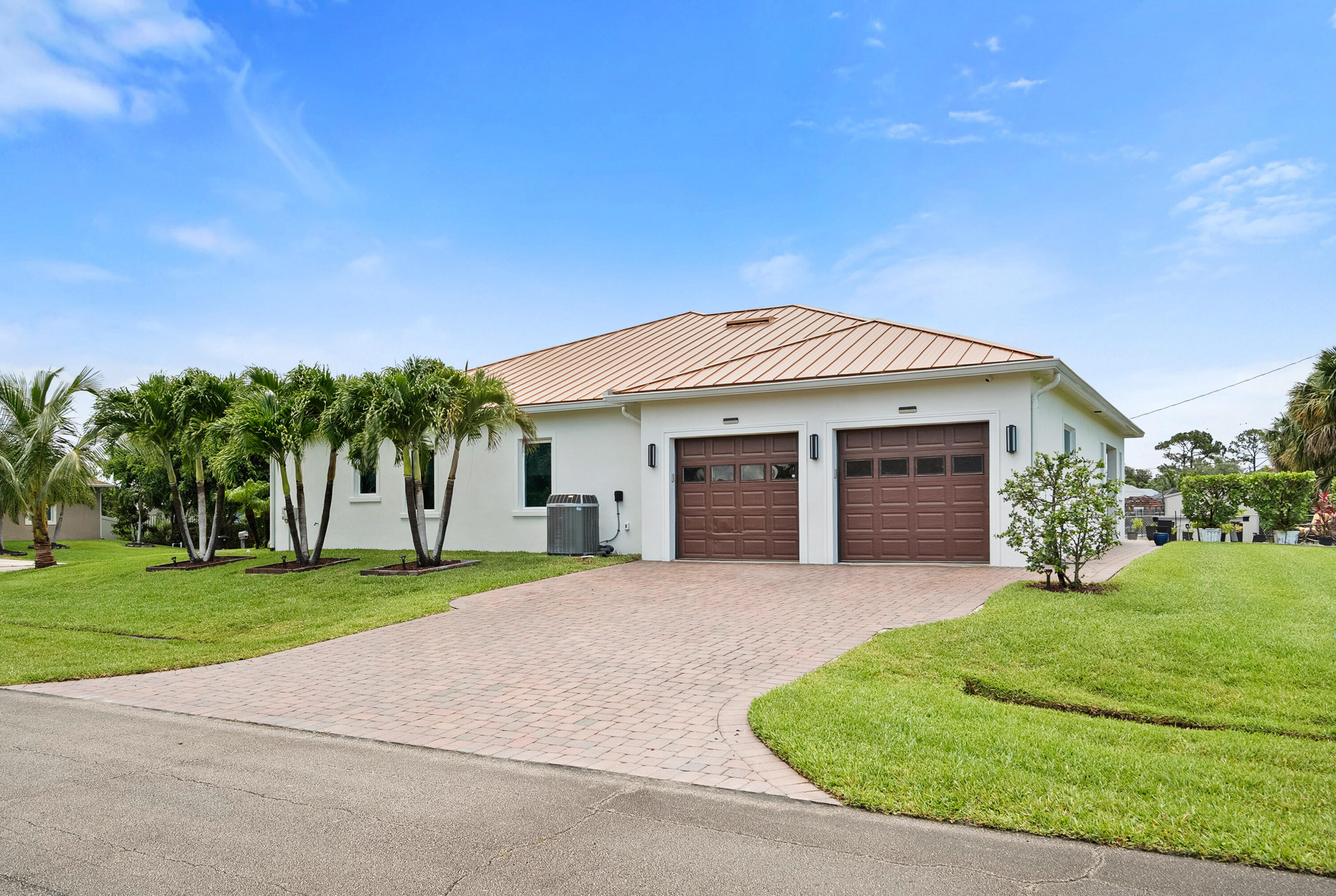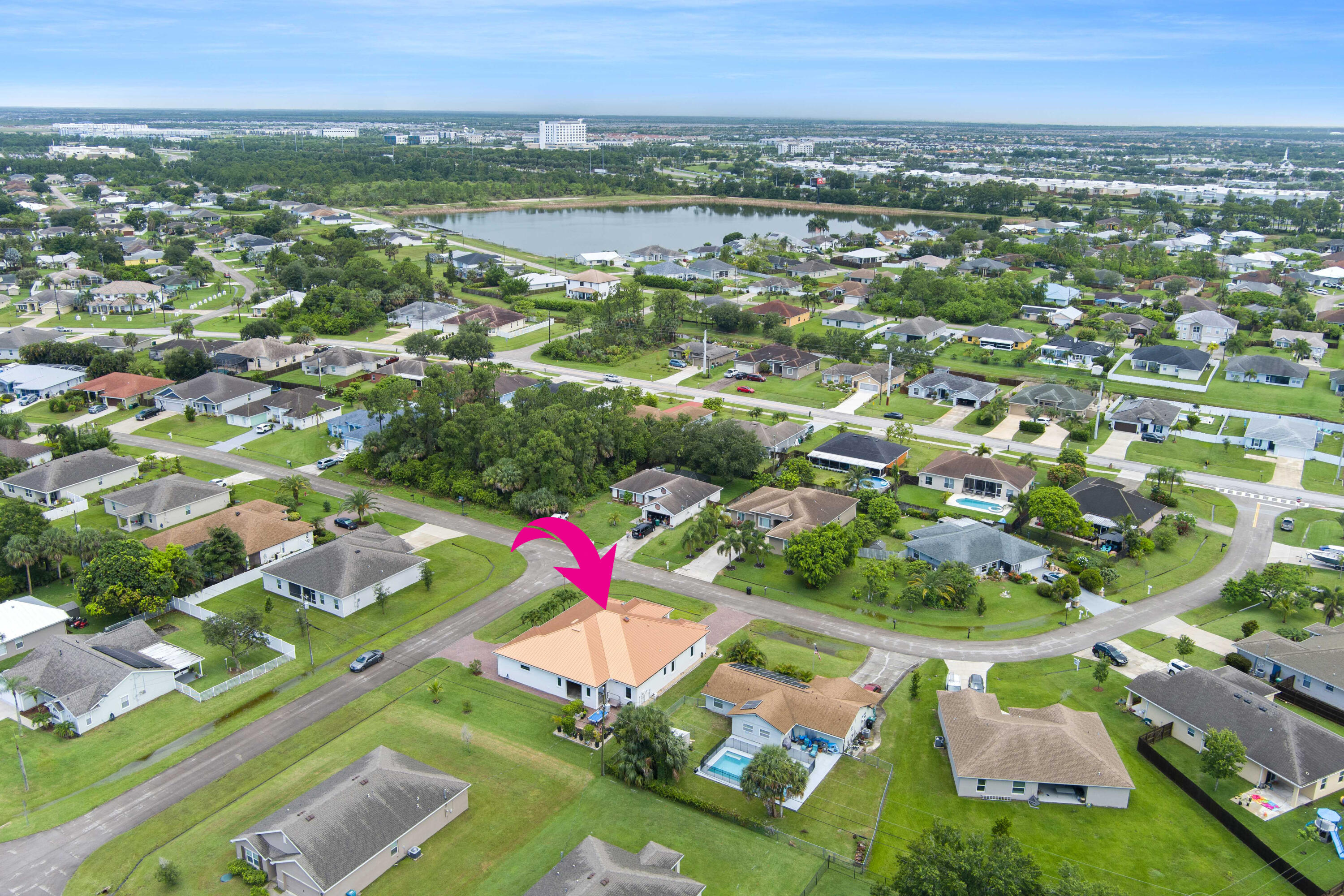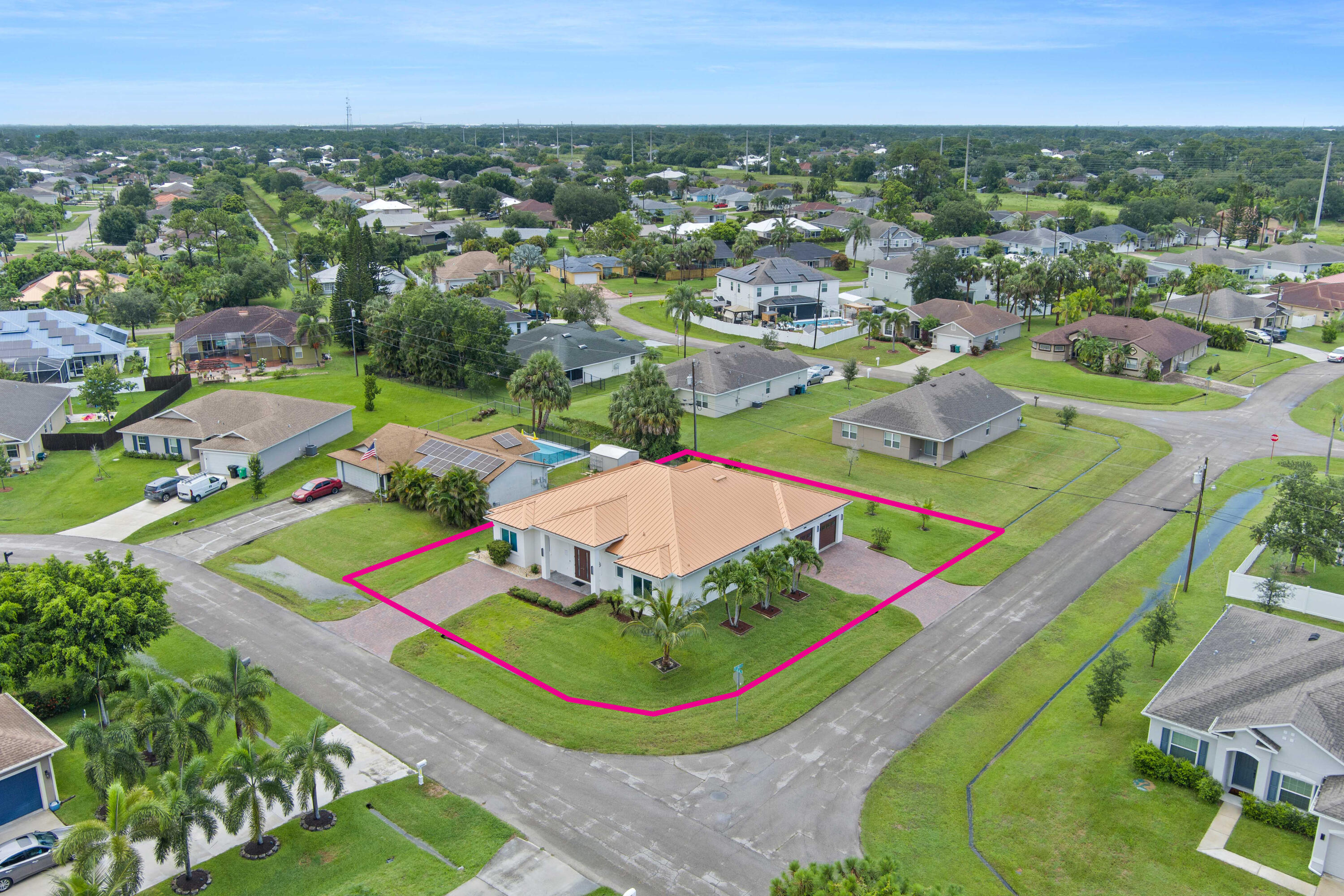 Welcome to your one-of-a-kind dream home--custom-built in 2019 and packed with upgrades you won't find anywhere else! Situated on an oversized corner lot with no HOA, this property offers the freedom to bring your boat or RV and the convenience of two driveways--all while enjoying close proximity to Tradition Square (less than 3 miles!) and just 53 minutes to West Palm Beach Airport for an easy second-home commute. Step inside and be wowed by wood-look tile floors throughout, 8-foot interior doors, impact-rated windows and doors, and a sleek seamless metal roof. Crown molding and designer custom sconce lighting elevate the home's interior, which has just been freshly painted. The open-concept layout is anchored by a coastal-inspired white and navy shaker kitchen, featuring bold black stainless appliances, a statement black range hood, and plenty of room to entertain. Step out to the expansive covered back patio, plumbed and ready for your dream summer kitchen, with tongue-and-groove ceiling details to match the stylish front entryway. The primary suite is pure perfection, with a glowing color-changing tray ceiling, a huge walk-in closet, and a spa-like ensuite bath you have to see to believe. Picture yourself unwinding in the stand-alone soaking tub, surrounded by LED-lit vanities, a dual-head marble shower, and stunning tilework. Homes like this don't come around oftenno HOA, designer finishes, prime location, and true indoor-outdoor living. ( Fall in love at first showingschedule your tour today!