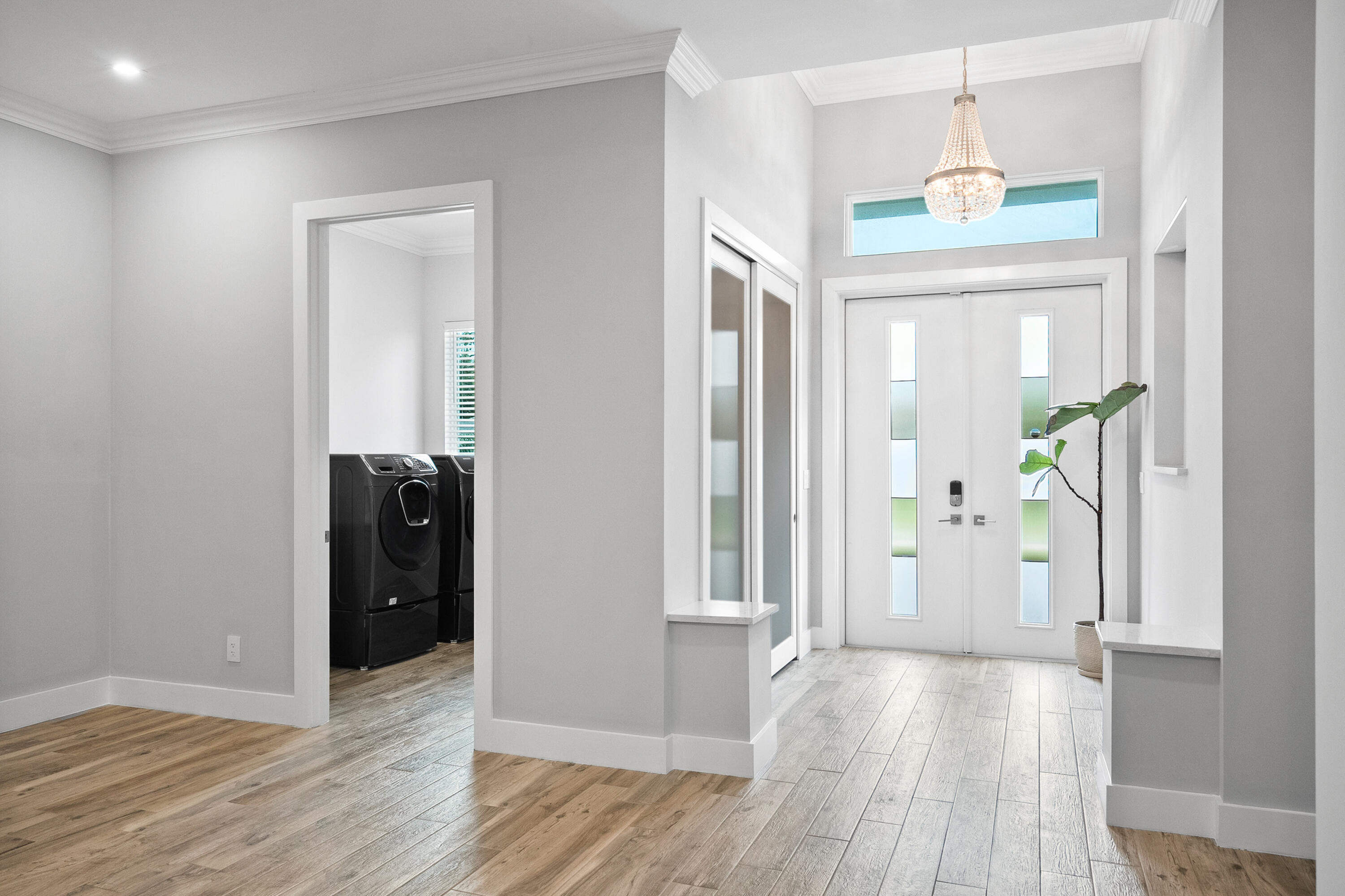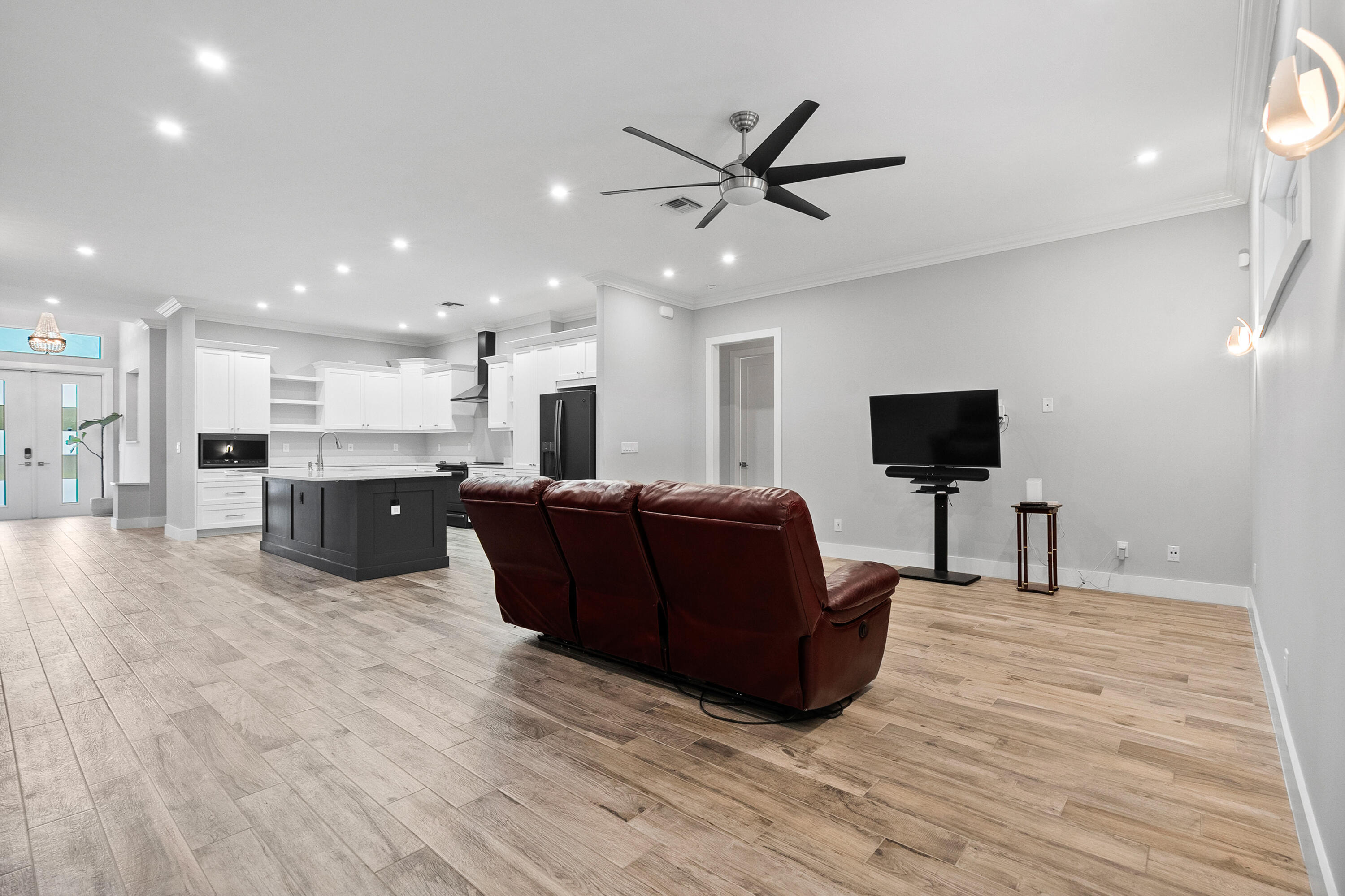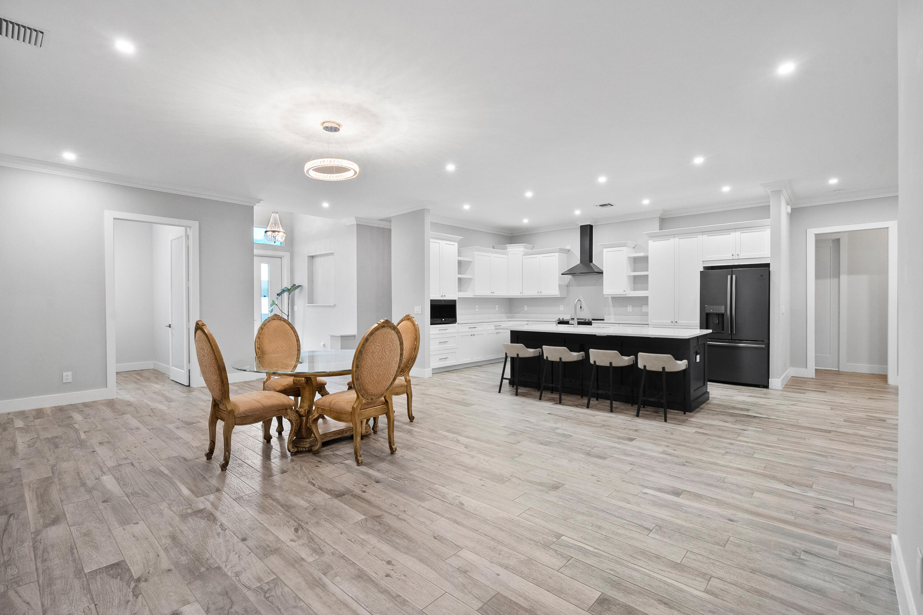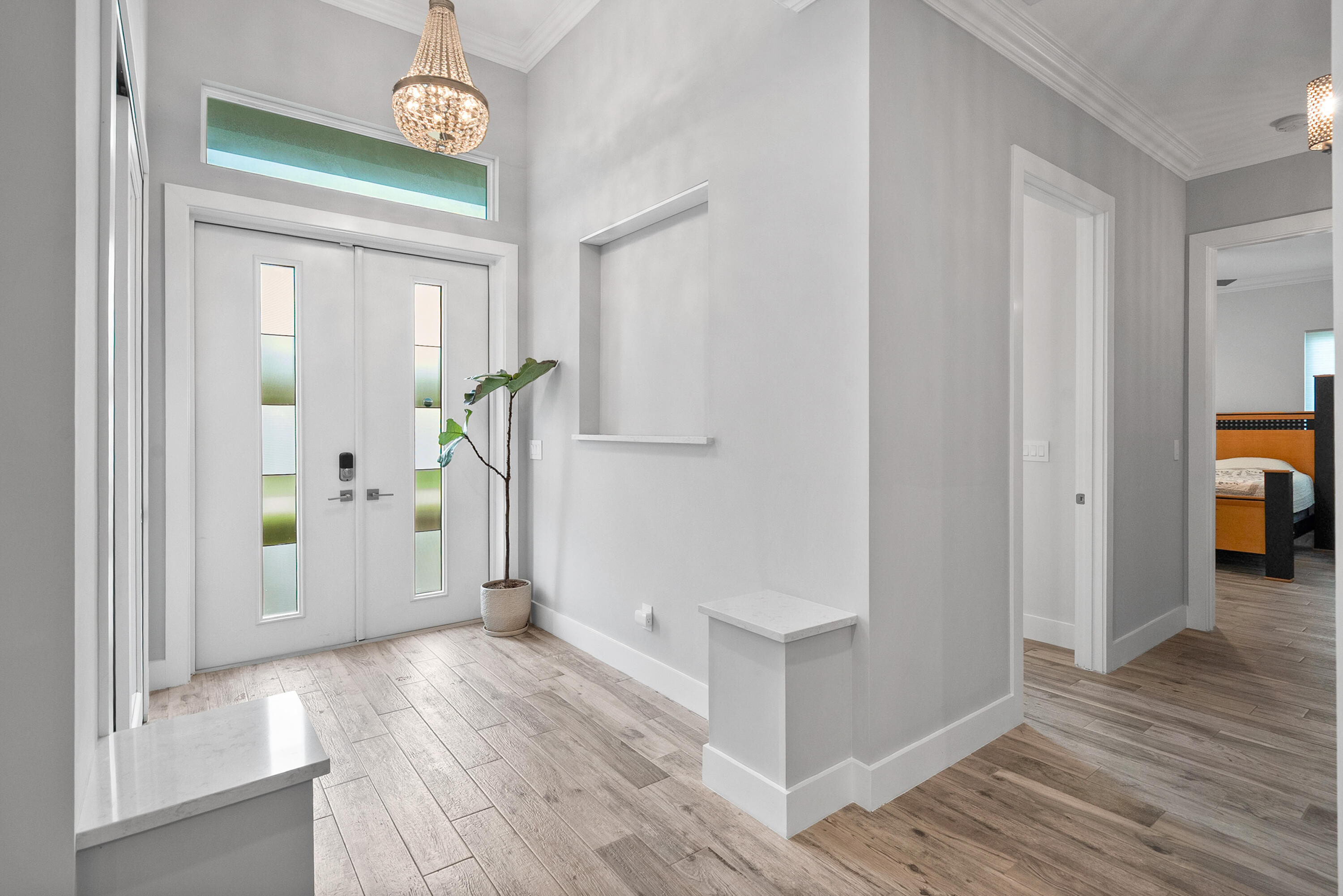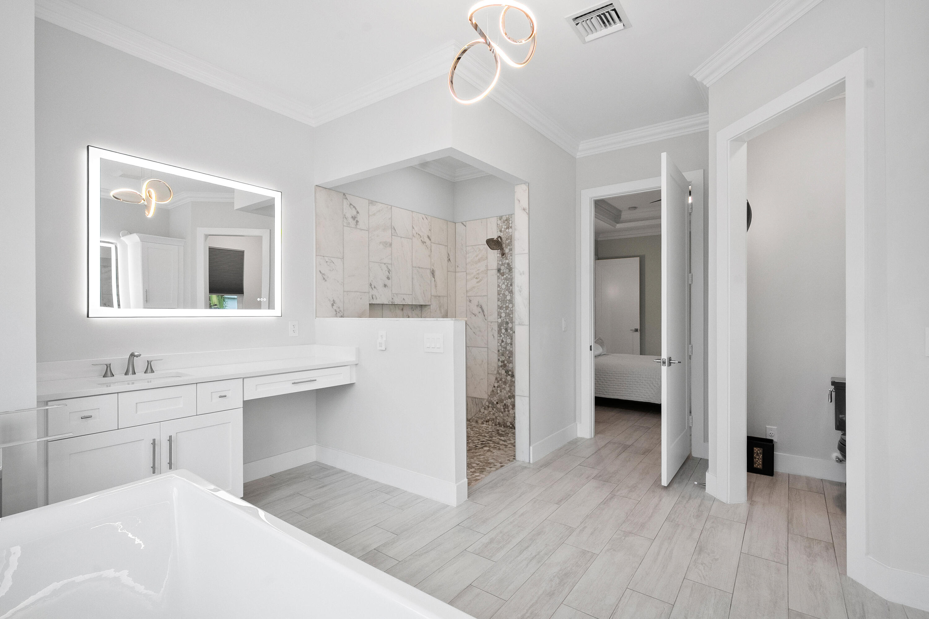 Welcome to your one-of-a-kind dream home--custom-built in 2019 and packed with upgrades you won't find anywhere else! Situated on an oversized corner lot with no HOA, this property offers the freedom to bring your boat or RV and the convenience of two driveways--all while enjoying close proximity to Tradition Square (less than 3 miles!) and just 53 minutes to West Palm Beach Airport for an easy second-home commute. Step inside and be wowed by wood-look tile floors throughout, 8-foot interior doors, impact-rated windows and doors, and a sleek seamless metal roof. Crown molding and designer custom sconce lighting elevate the home's interior, which has just been freshly painted. The open-concept layout is anchored by a coastal-inspired white and navy shaker kitchen, featuring bold black stainless appliances, a statement black range hood, and plenty of room to entertain. Step out to the expansive covered back patio, plumbed and ready for your dream summer kitchen, with tongue-and-groove ceiling details to match the stylish front entryway. The primary suite is pure perfection, with a glowing color-changing tray ceiling, a huge walk-in closet, and a spa-like ensuite bath you have to see to believe. Picture yourself unwinding in the stand-alone soaking tub, surrounded by LED-lit vanities, a dual-head marble shower, and stunning tilework. Homes like this don't come around oftenno HOA, designer finishes, prime location, and true indoor-outdoor living. ( Fall in love at first showingschedule your tour today!