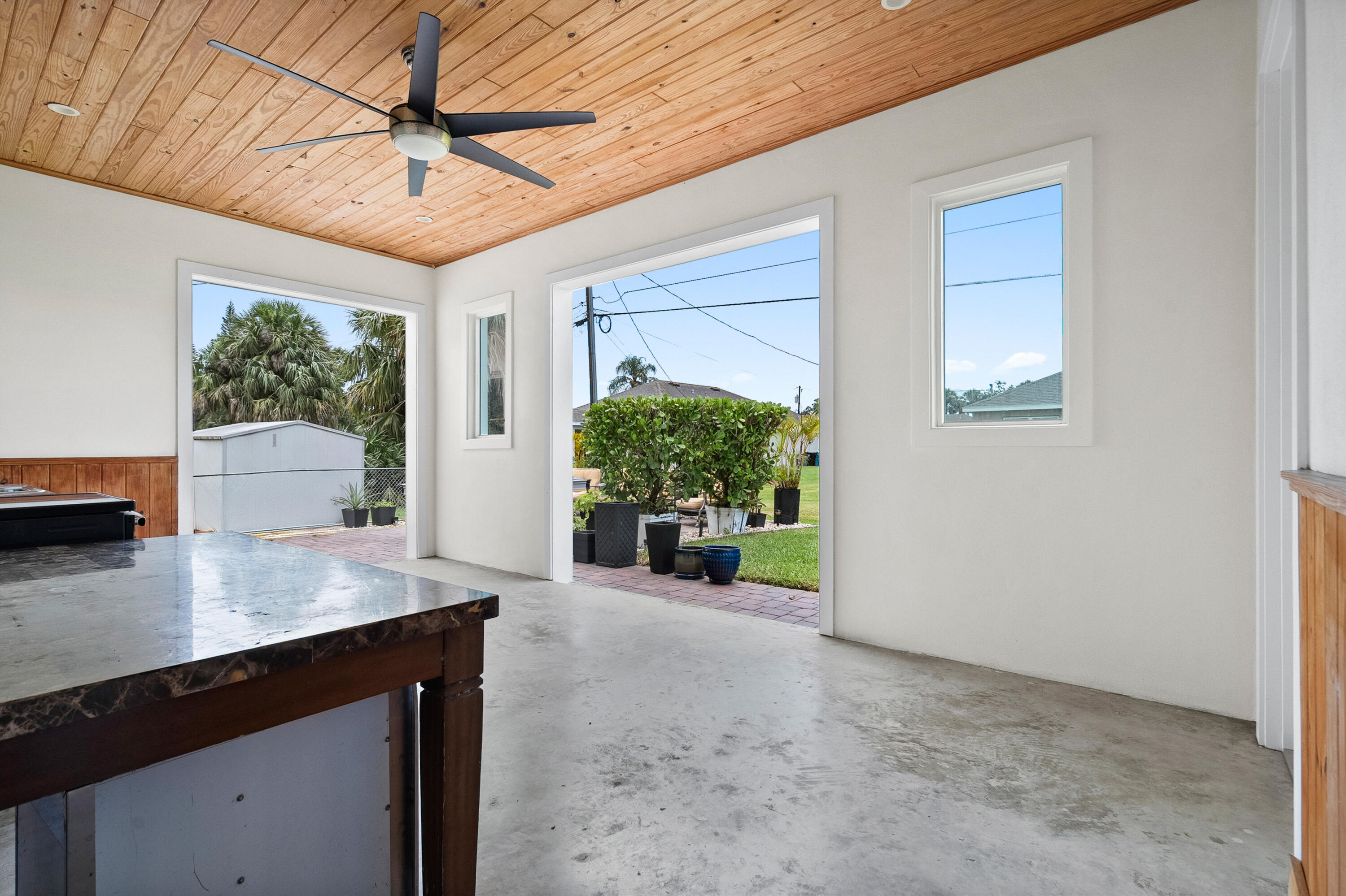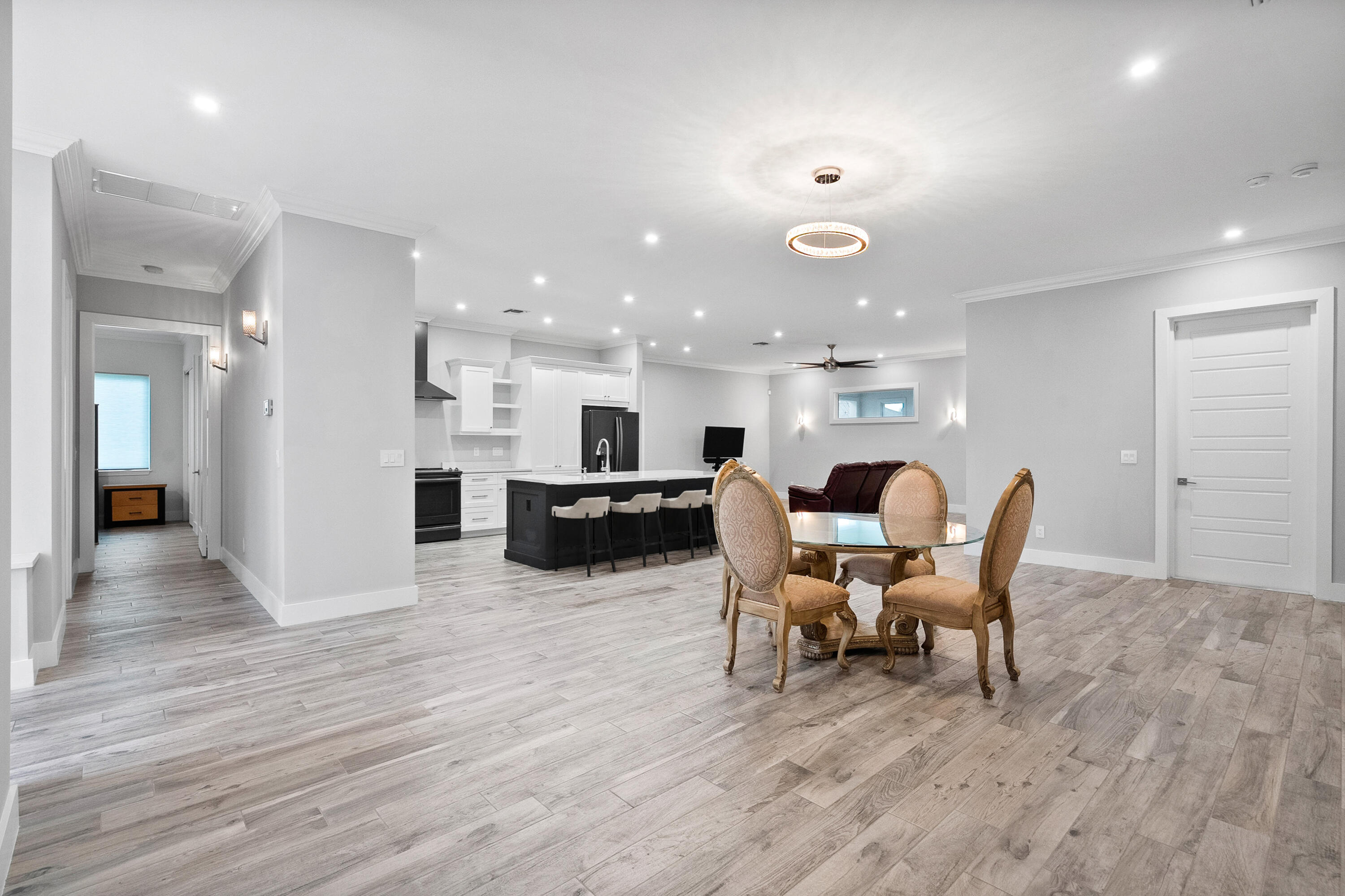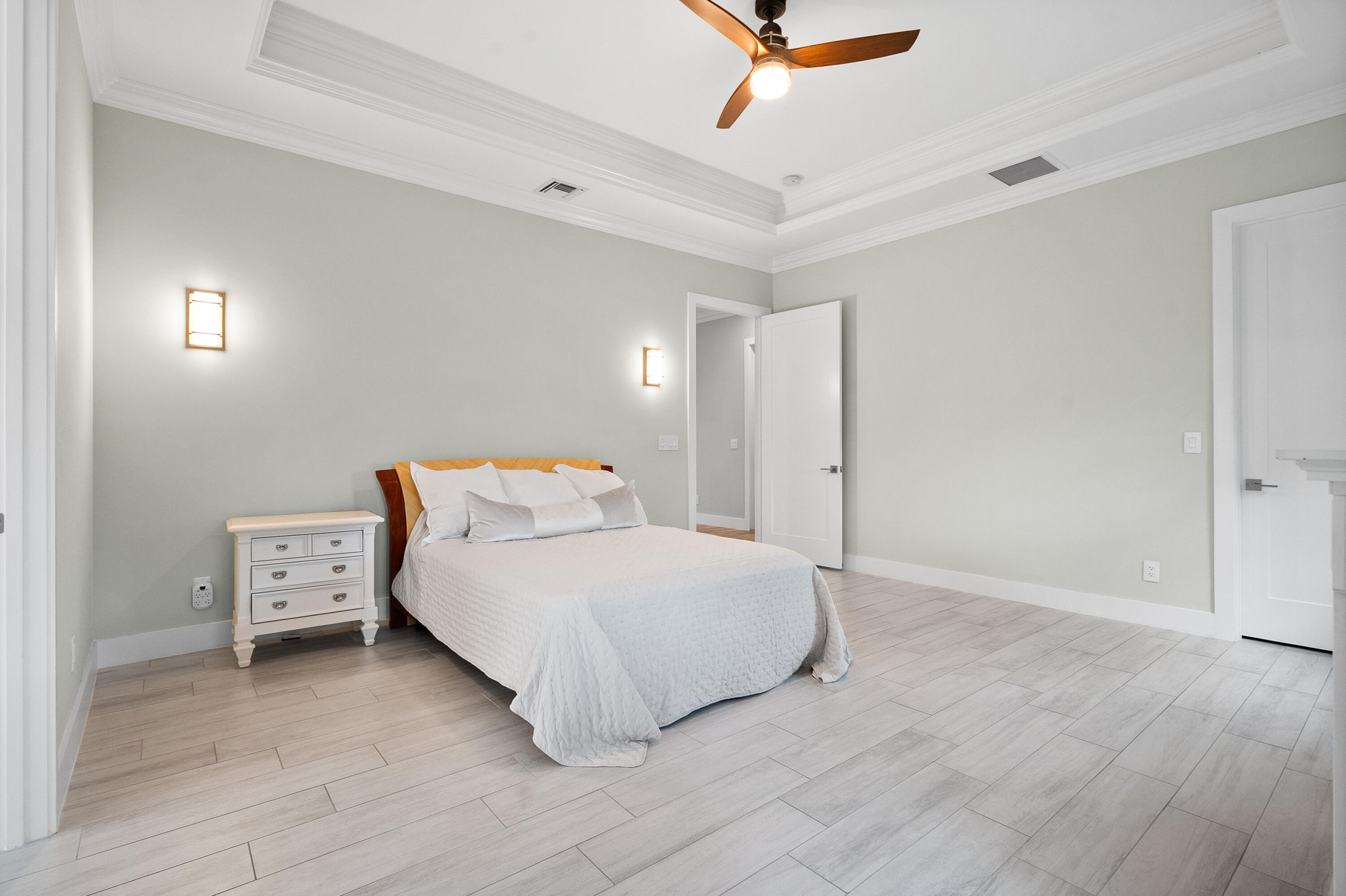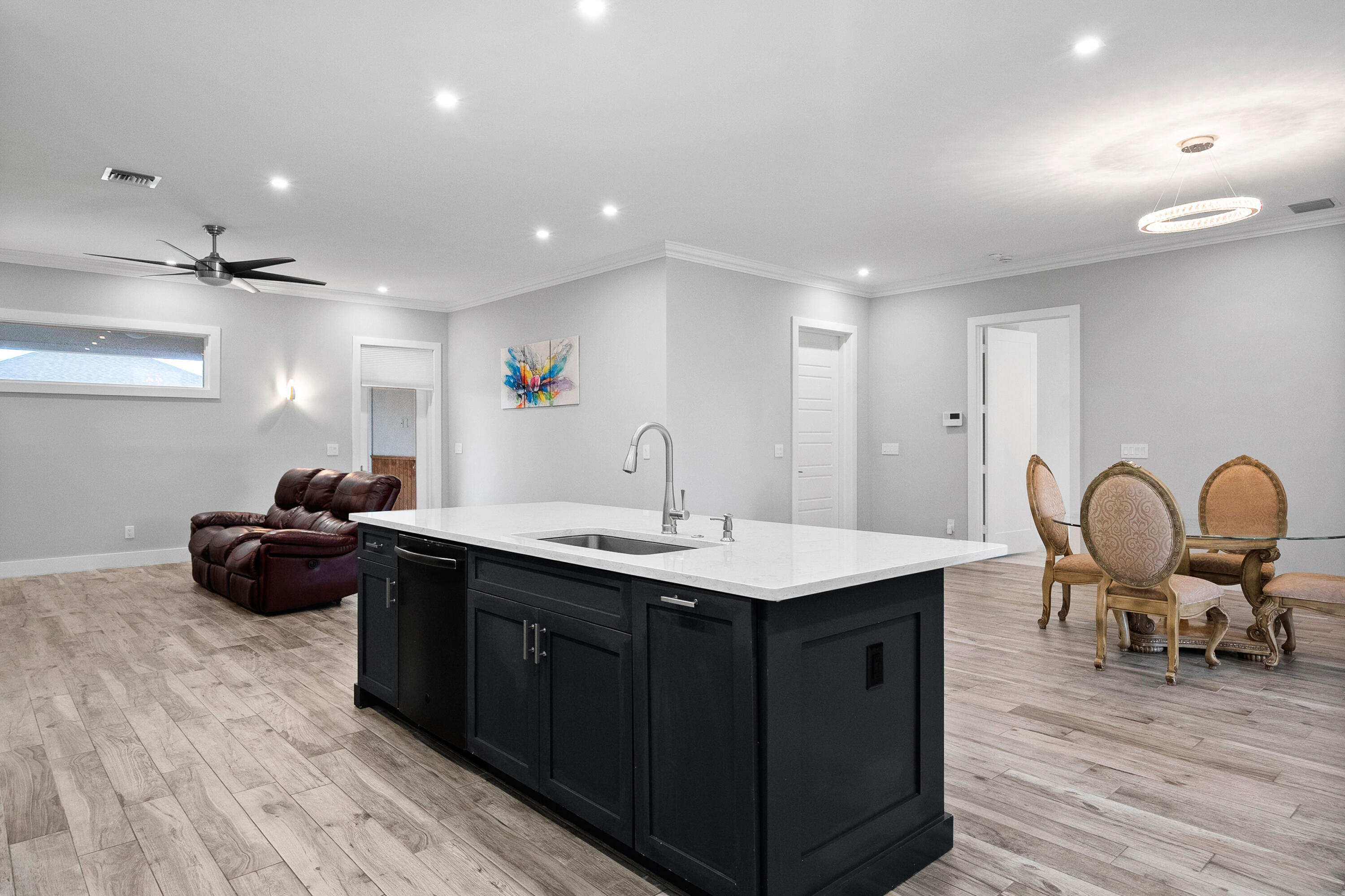 Welcome to your one-of-a-kind dream home--custom-built in 2019 and packed with upgrades you won't find anywhere else! Situated on an oversized corner lot with no HOA, this property offers the freedom to bring your boat or RV and the convenience of two driveways--all while enjoying close proximity to Tradition Square (less than 3 miles!) and just 53 minutes to West Palm Beach Airport for an easy second-home commute. Step inside and be wowed by wood-look tile floors throughout, 8-foot interior doors, impact-rated windows and doors, and a sleek seamless metal roof. Crown molding and designer custom sconce lighting elevate the home's interior, which has just been freshly painted. The open-concept layout is anchored by a coastal-inspired white and navy shaker kitchen, featuring bold black stainless appliances, a statement black range hood, and plenty of room to entertain. Step out to the expansive covered back patio, plumbed and ready for your dream summer kitchen, with tongue-and-groove ceiling details to match the stylish front entryway. The primary suite is pure perfection, with a glowing color-changing tray ceiling, a huge walk-in closet, and a spa-like ensuite bath you have to see to believe. Picture yourself unwinding in the stand-alone soaking tub, surrounded by LED-lit vanities, a dual-head marble shower, and stunning tilework. Homes like this don't come around oftenno HOA, designer finishes, prime location, and true indoor-outdoor living. ( Fall in love at first showingschedule your tour today!