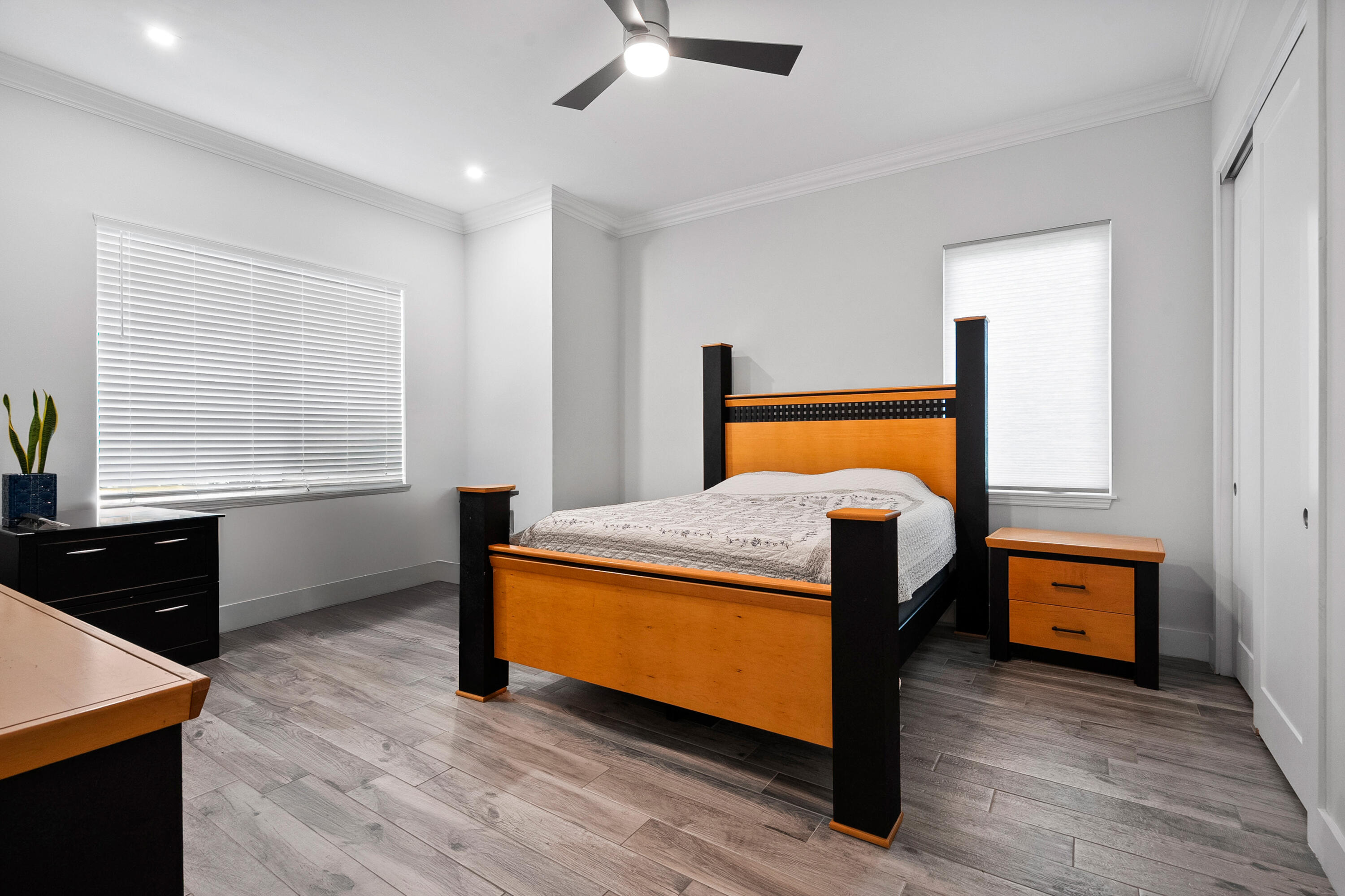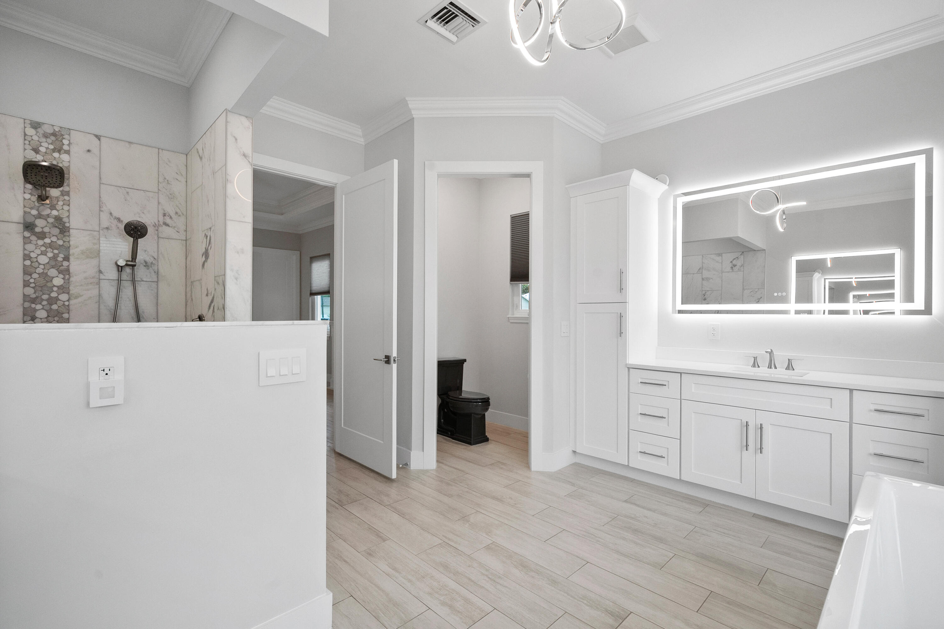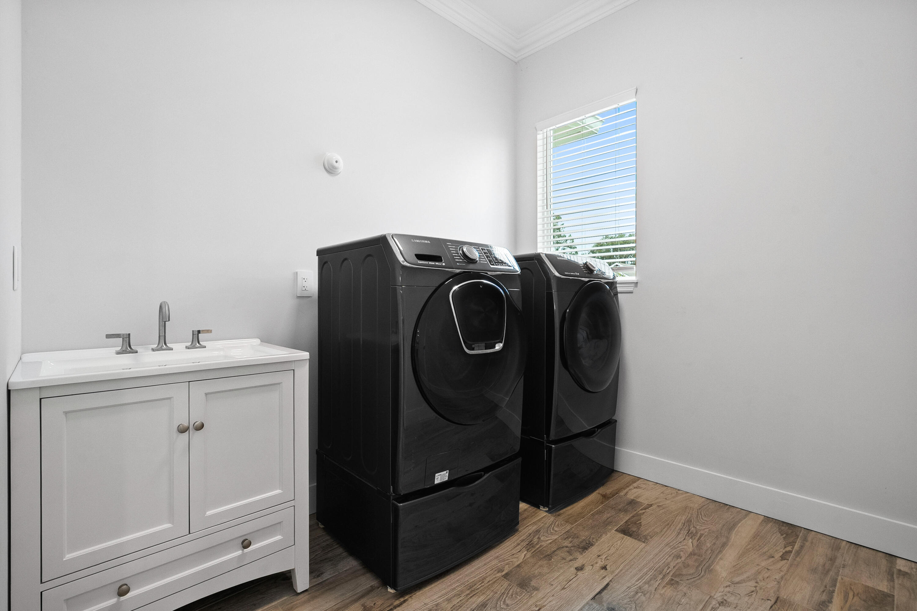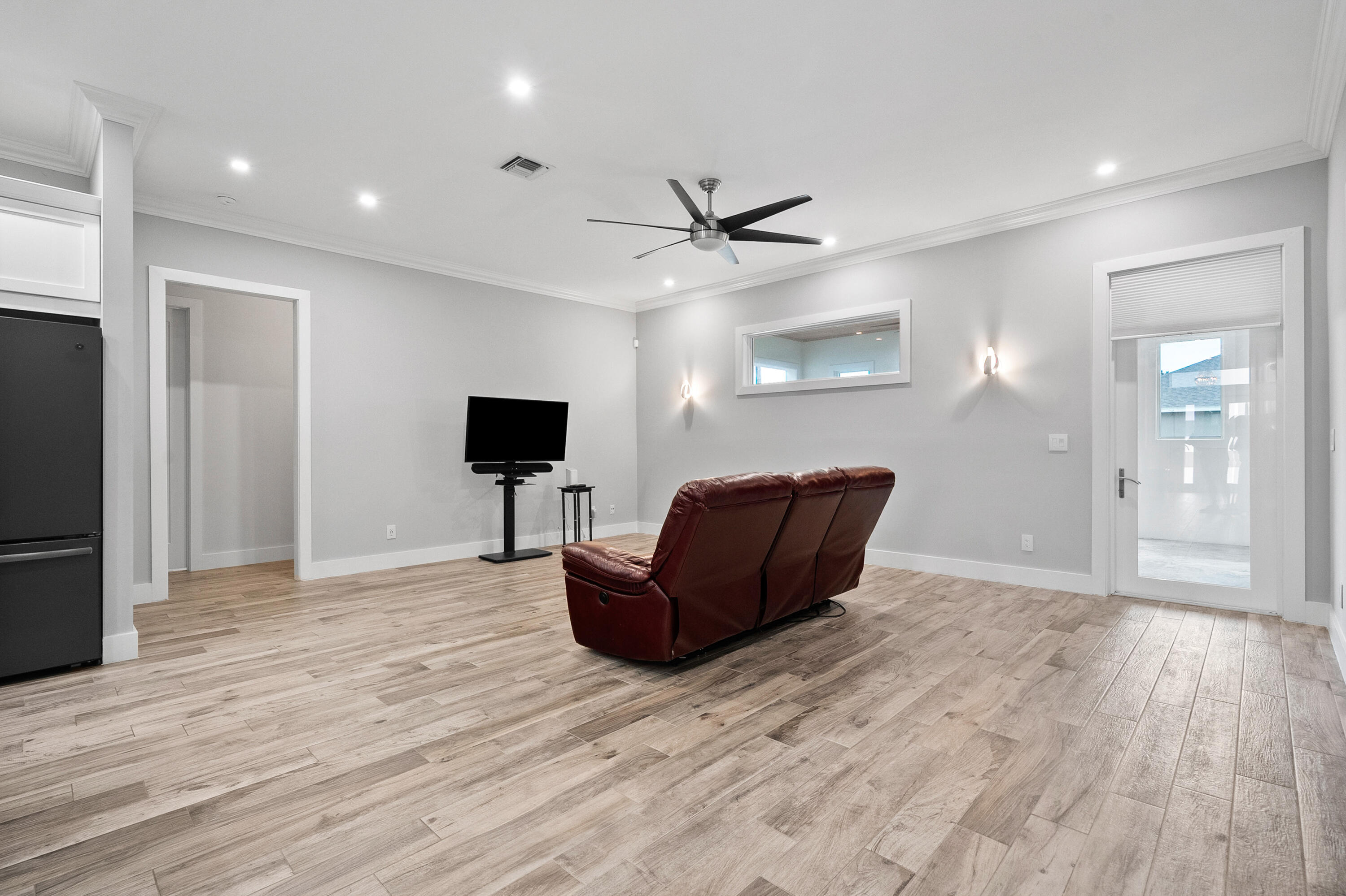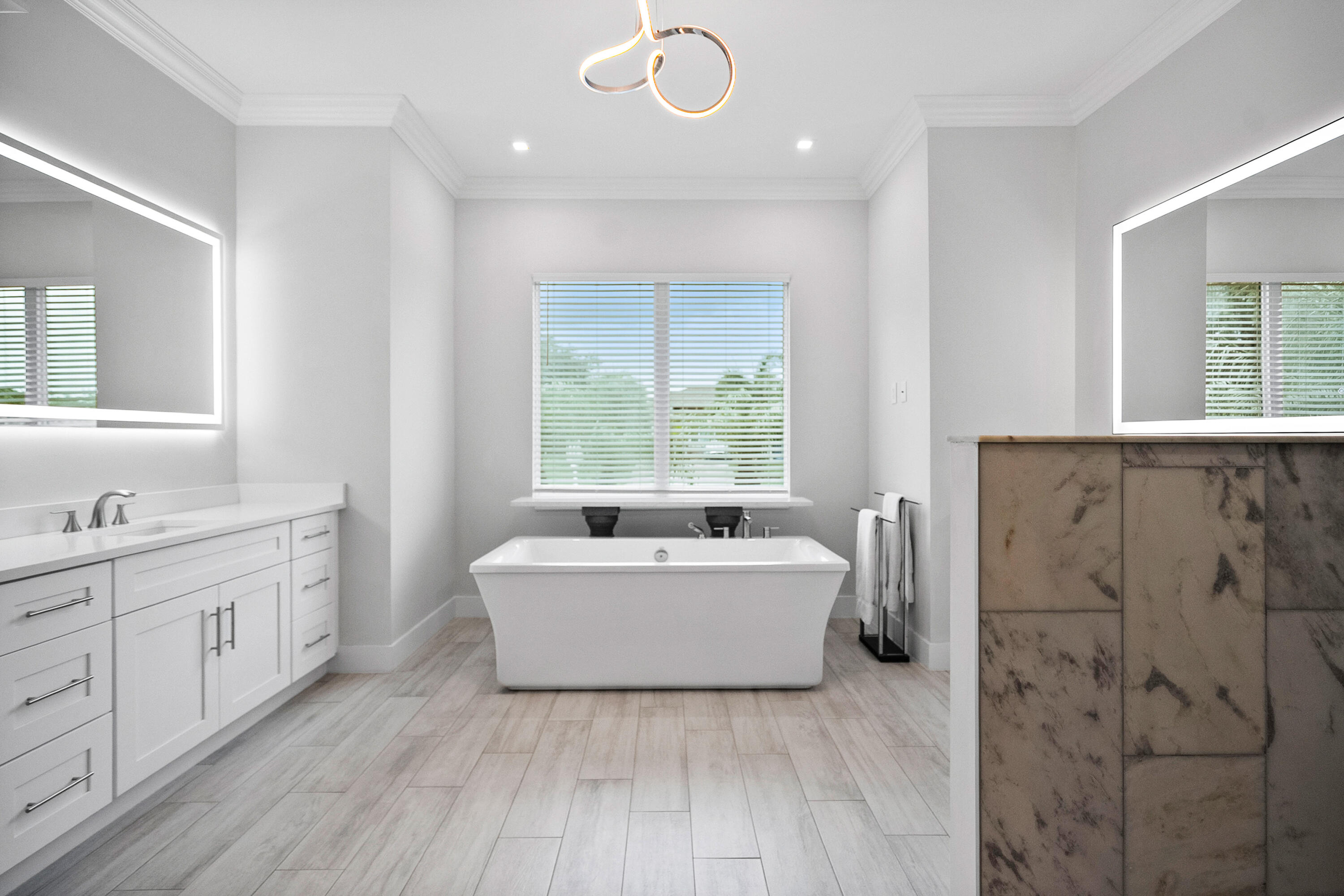 Welcome to your one-of-a-kind dream home--custom-built in 2019 and packed with upgrades you won't find anywhere else! Situated on an oversized corner lot with no HOA, this property offers the freedom to bring your boat or RV and the convenience of two driveways--all while enjoying close proximity to Tradition Square (less than 3 miles!) and just 53 minutes to West Palm Beach Airport for an easy second-home commute. Step inside and be wowed by wood-look tile floors throughout, 8-foot interior doors, impact-rated windows and doors, and a sleek seamless metal roof. Crown molding and designer custom sconce lighting elevate the home's interior, which has just been freshly painted. The open-concept layout is anchored by a coastal-inspired white and navy shaker kitchen, featuring bold black stainless appliances, a statement black range hood, and plenty of room to entertain. Step out to the expansive covered back patio, plumbed and ready for your dream summer kitchen, with tongue-and-groove ceiling details to match the stylish front entryway. The primary suite is pure perfection, with a glowing color-changing tray ceiling, a huge walk-in closet, and a spa-like ensuite bath you have to see to believe. Picture yourself unwinding in the stand-alone soaking tub, surrounded by LED-lit vanities, a dual-head marble shower, and stunning tilework. Homes like this don't come around oftenno HOA, designer finishes, prime location, and true indoor-outdoor living. ( Fall in love at first showingschedule your tour today!
