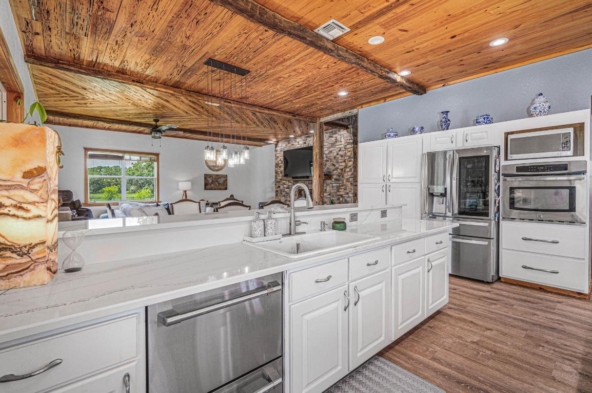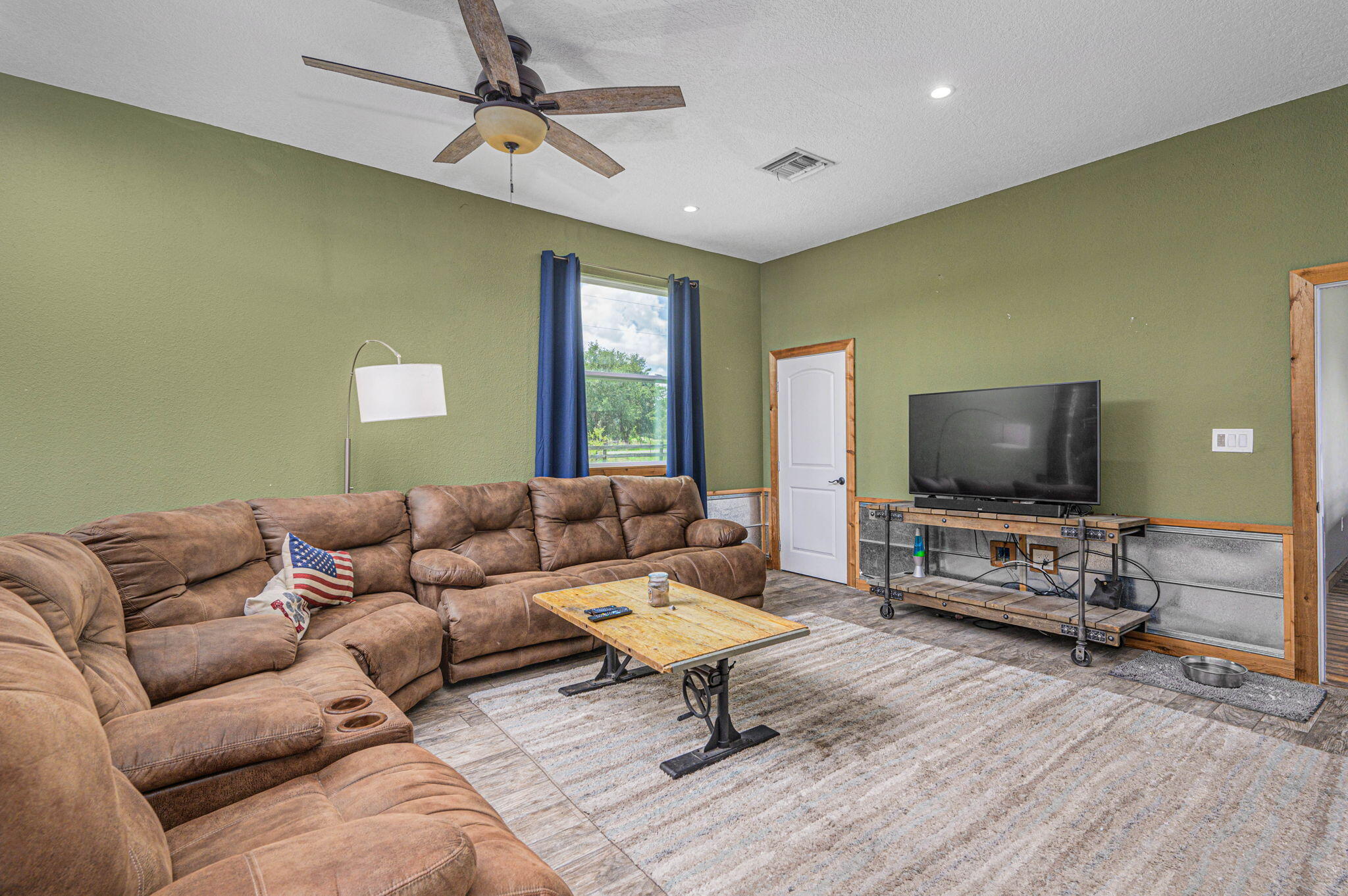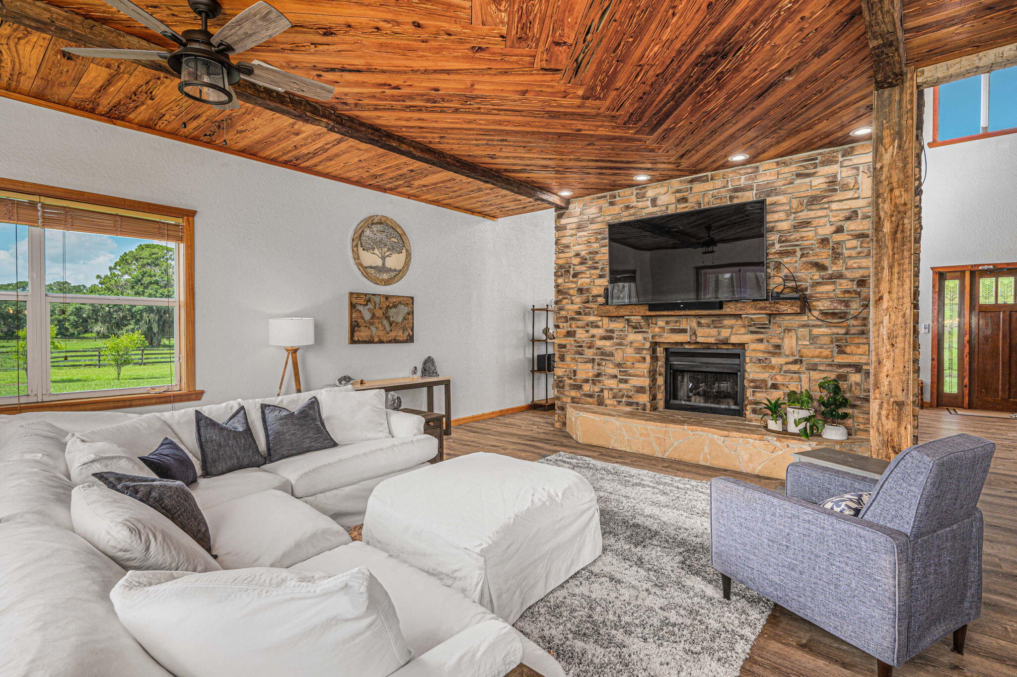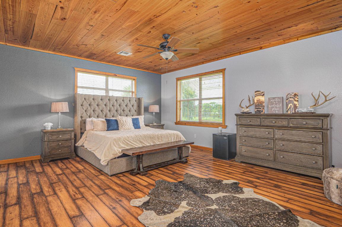 Motivated seller! Bring all offers! This property offers a perfect blend of comfort, privacy , and potential. Nestled in a serene gated neighborhood while providing a tranquil environment. Situated on a generous 21.31 acre lot. Offering ample outdoor space for relaxation and entertainment, with animals and vehicles alike. Thoughtfully designed floor plan featuring 4 bedrooms and 3.5 bathrooms, in the main home. An additional guest house fully equipped with a bedroom, full bath, kitchen and living room. Bright interior with rustic and modern features, creating a warm and inviting atmosphere throughout. Well-appointed kitchen, exterior kitchen with grill and beverage station. Stocked fishing pond, fenced in pastures, pool/spa. Reverse osmosis water treatment system, generator and more