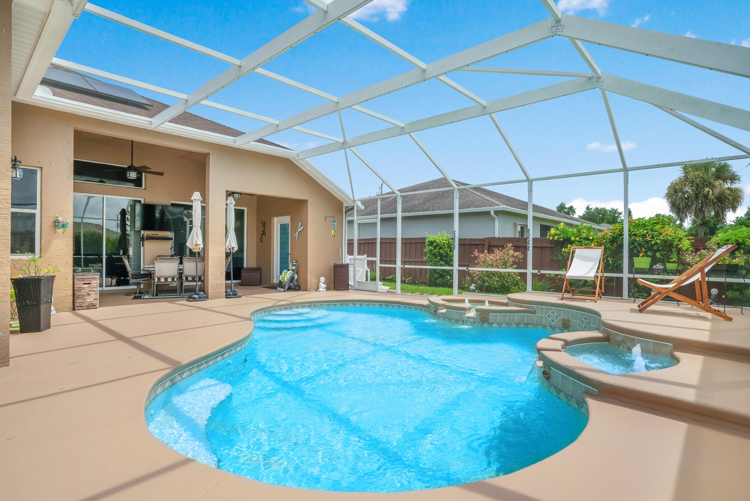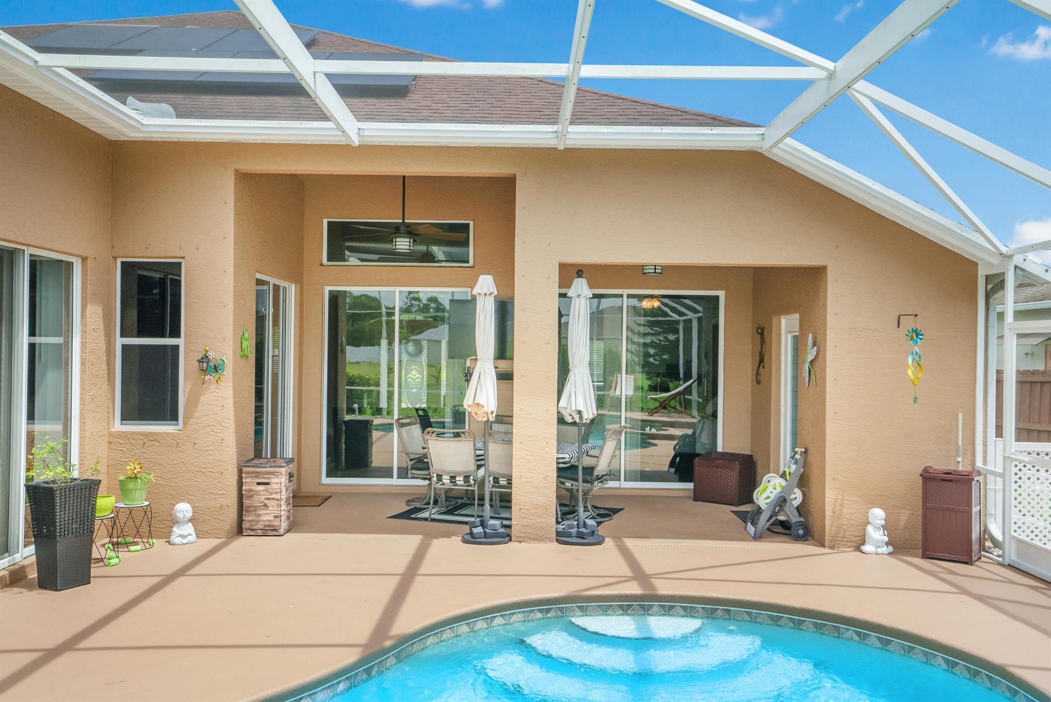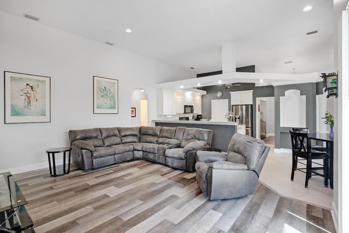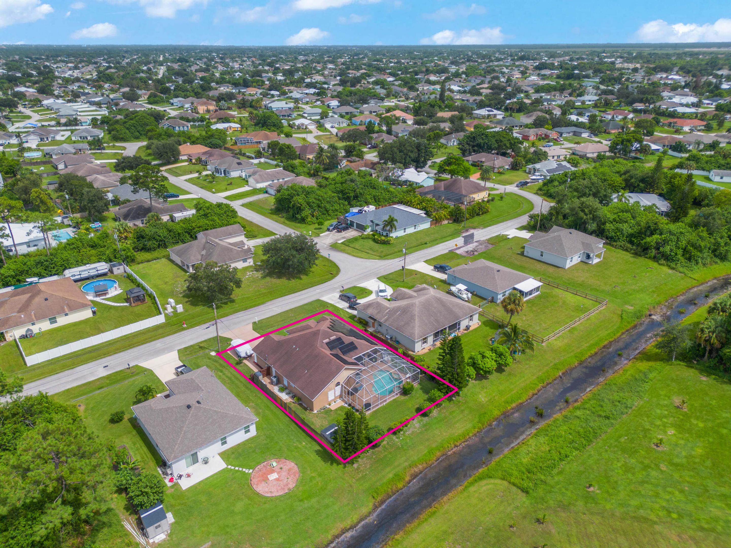 Welcome Home! We're only 2.5 miles from the nearest Publix & I95 making it an easy commute for those of you that work down South.This beautifully updated pool home features a desirable floorplan of 3 bedrooms & 2 1/2 bathrooms with an additional den that could easily be converted to a 4th bedroom or used as a home office, & is close to 2400 sq ft. The expansive kitchen boasts an island, pantry, updated appliances, and opens to the family room with 14 ft ceilings perfect for your over the top Christmas tree. Plus when you buy this home you will gain 37 solar panels paid in full and no longer have to stress over high electric bills! Full Window shutters for insurance. Less than 4 year old AC. No HOA and room to park your boat and or RV. Reverse osmosis water system in kitchen sink & Fridge.