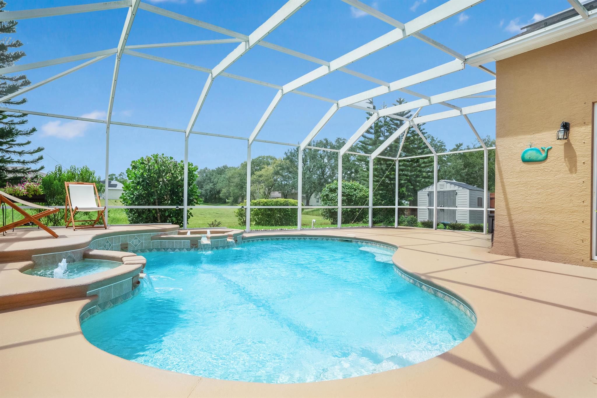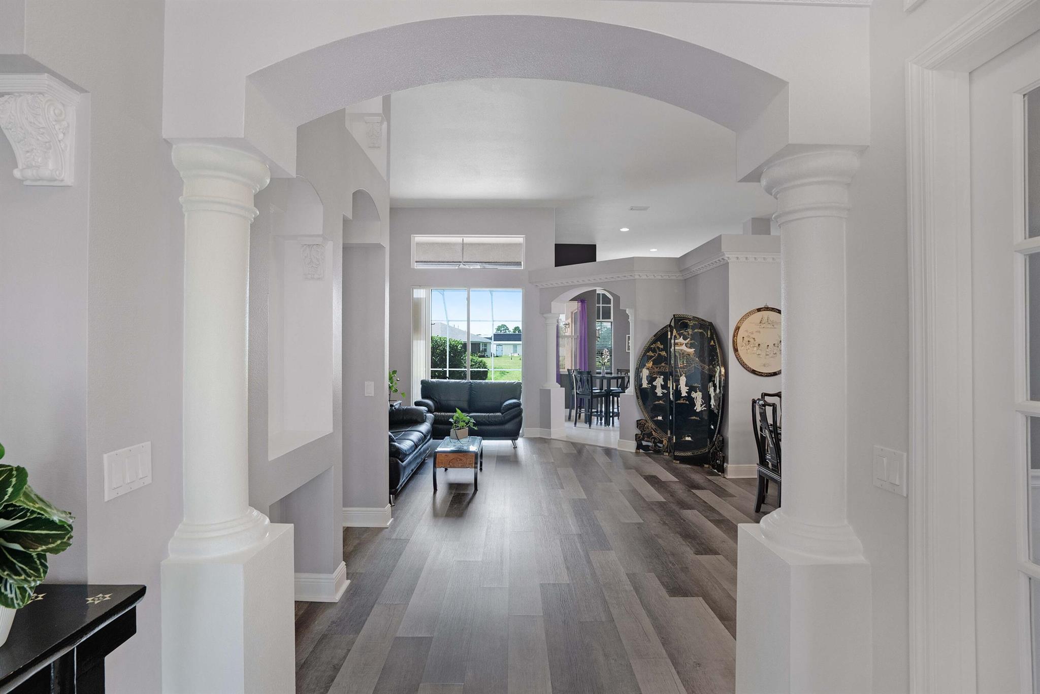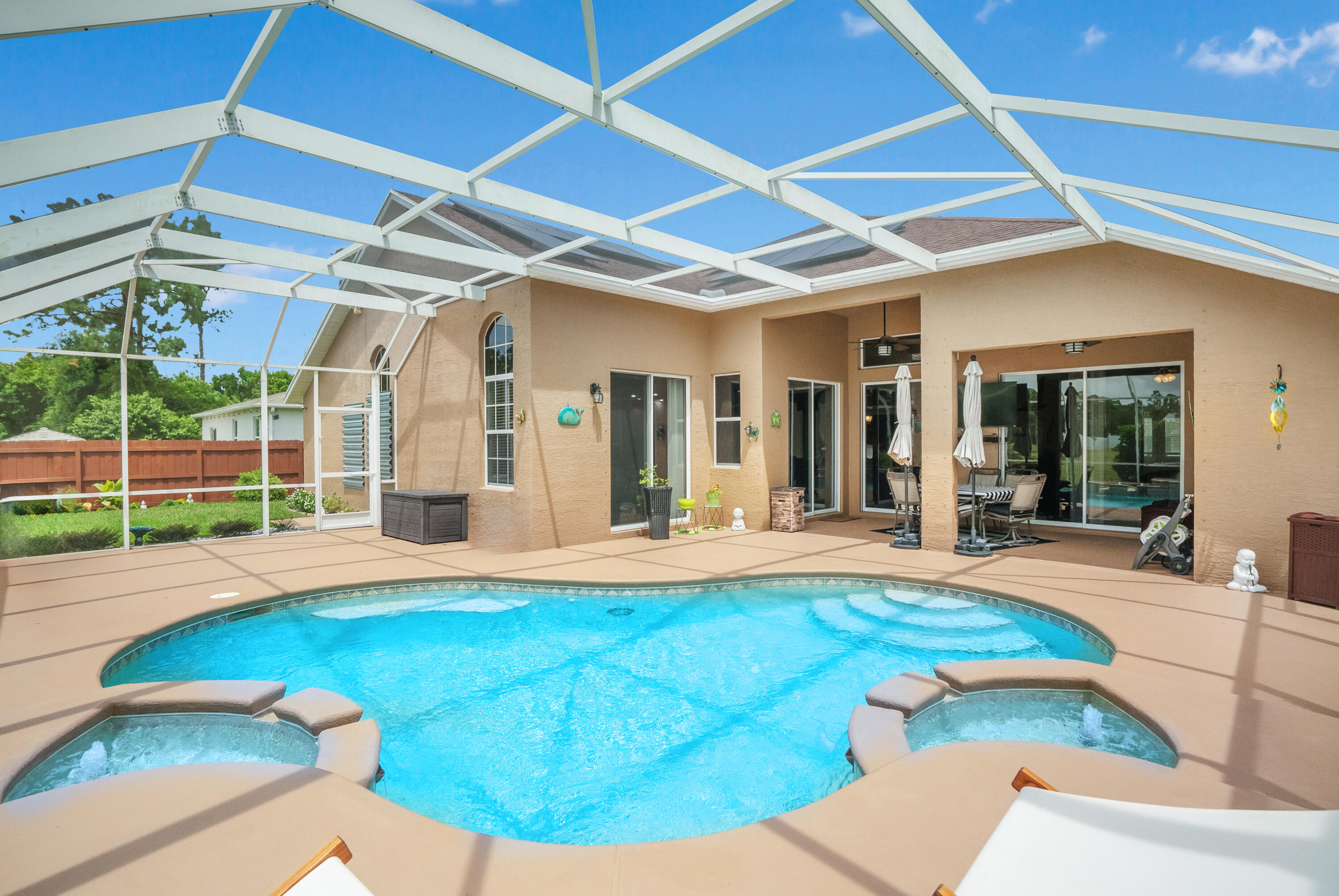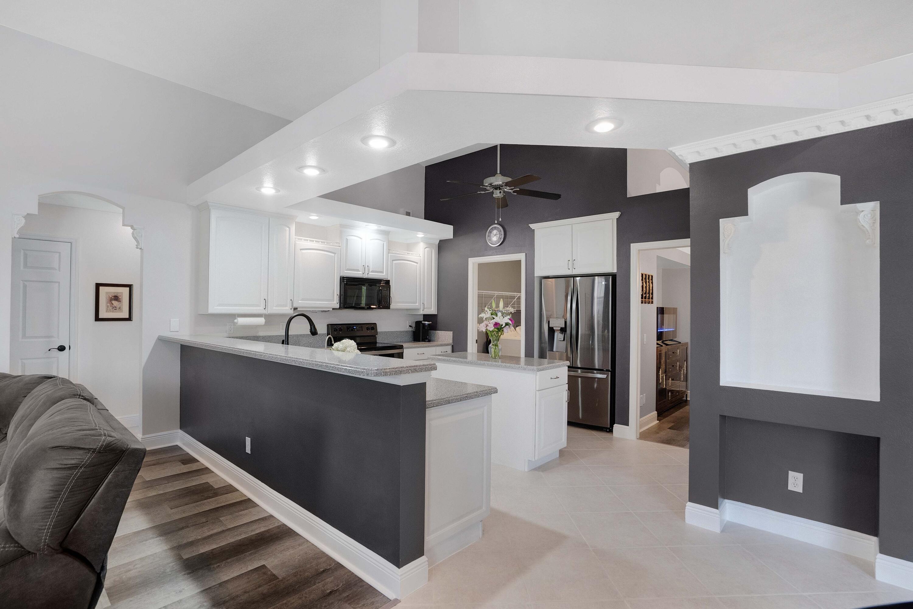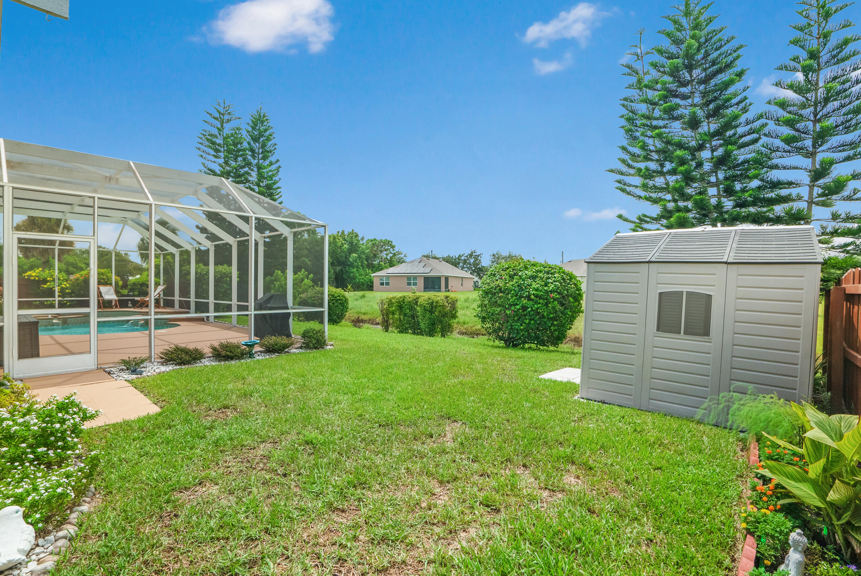 Welcome Home! We're only 2.5 miles from the nearest Publix & I95 making it an easy commute for those of you that work down South.This beautifully updated pool home features a desirable floorplan of 3 bedrooms & 2 1/2 bathrooms with an additional den that could easily be converted to a 4th bedroom or used as a home office, & is close to 2400 sq ft. The expansive kitchen boasts an island, pantry, updated appliances, and opens to the family room with 14 ft ceilings perfect for your over the top Christmas tree. Plus when you buy this home you will gain 37 solar panels paid in full and no longer have to stress over high electric bills! Full Window shutters for insurance. Less than 4 year old AC. No HOA and room to park your boat and or RV. Reverse osmosis water system in kitchen sink & Fridge.