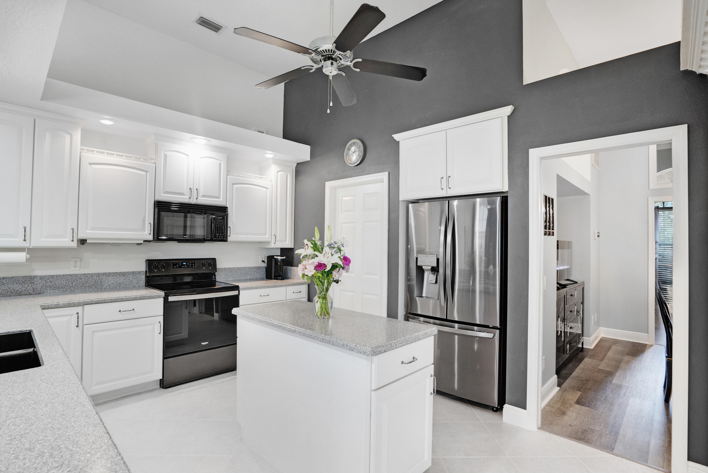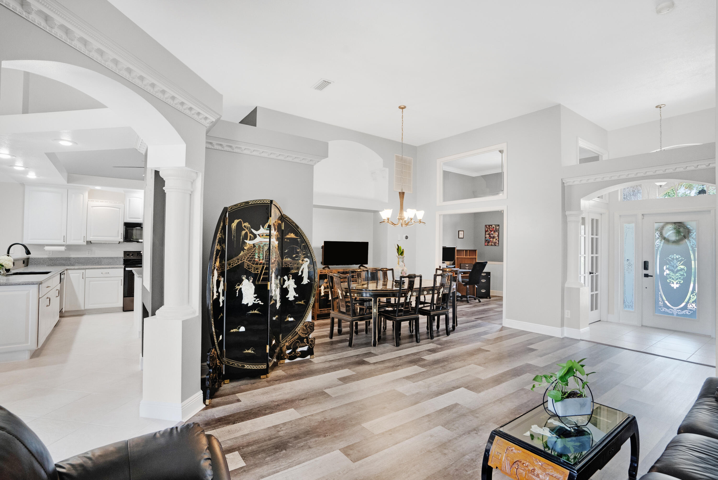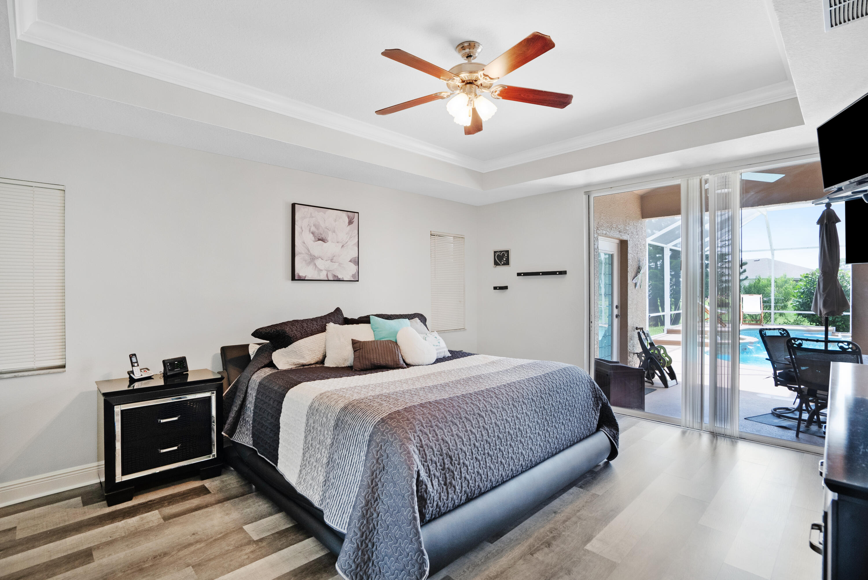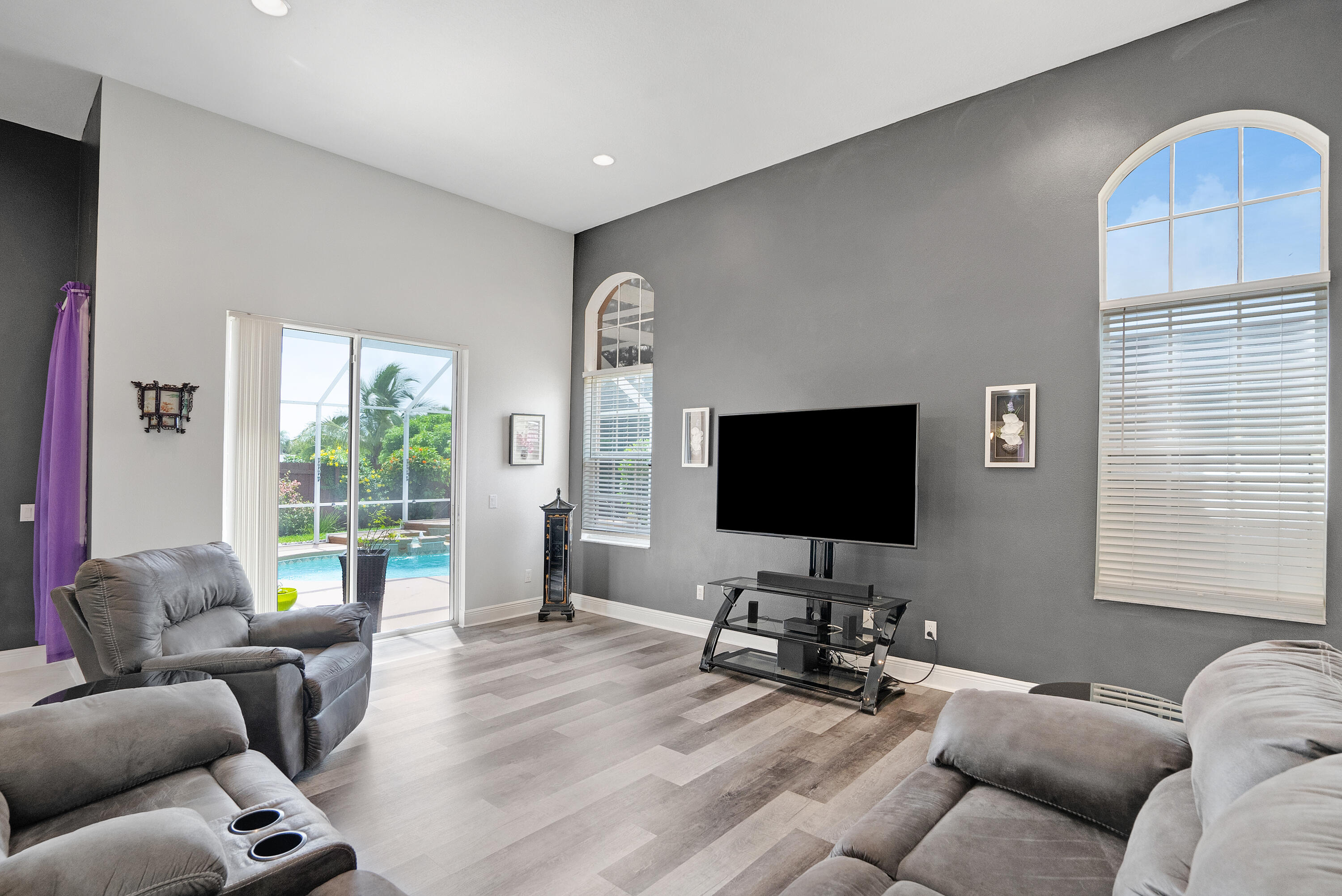 Welcome Home! We're only 2.5 miles from the nearest Publix & I95 making it an easy commute for those of you that work down South.This beautifully updated pool home features a desirable floorplan of 3 bedrooms & 2 1/2 bathrooms with an additional den that could easily be converted to a 4th bedroom or used as a home office, & is close to 2400 sq ft. The expansive kitchen boasts an island, pantry, updated appliances, and opens to the family room with 14 ft ceilings perfect for your over the top Christmas tree. Plus when you buy this home you will gain 37 solar panels paid in full and no longer have to stress over high electric bills! Full Window shutters for insurance. Less than 4 year old AC. No HOA and room to park your boat and or RV. Reverse osmosis water system in kitchen sink & Fridge.