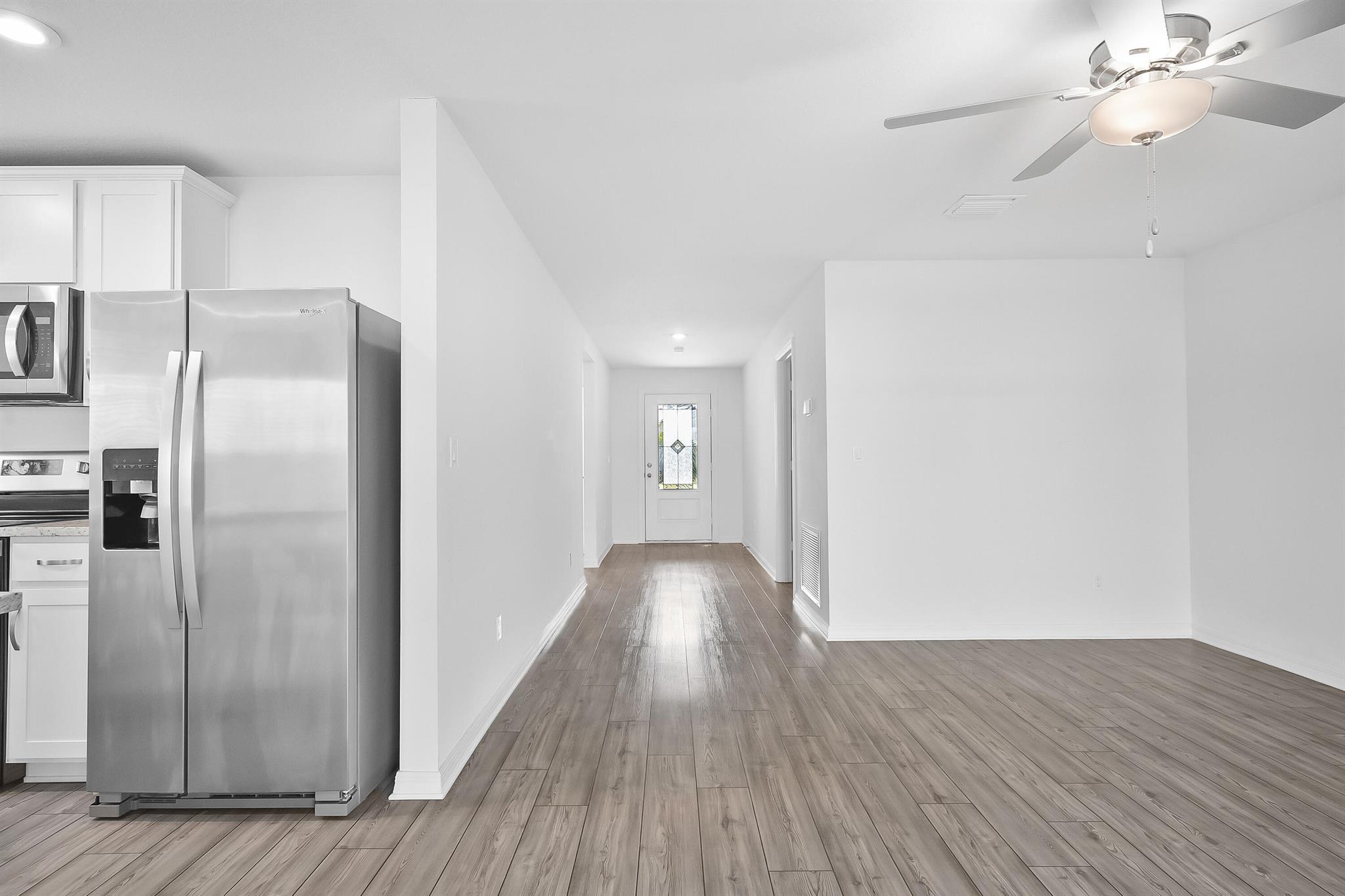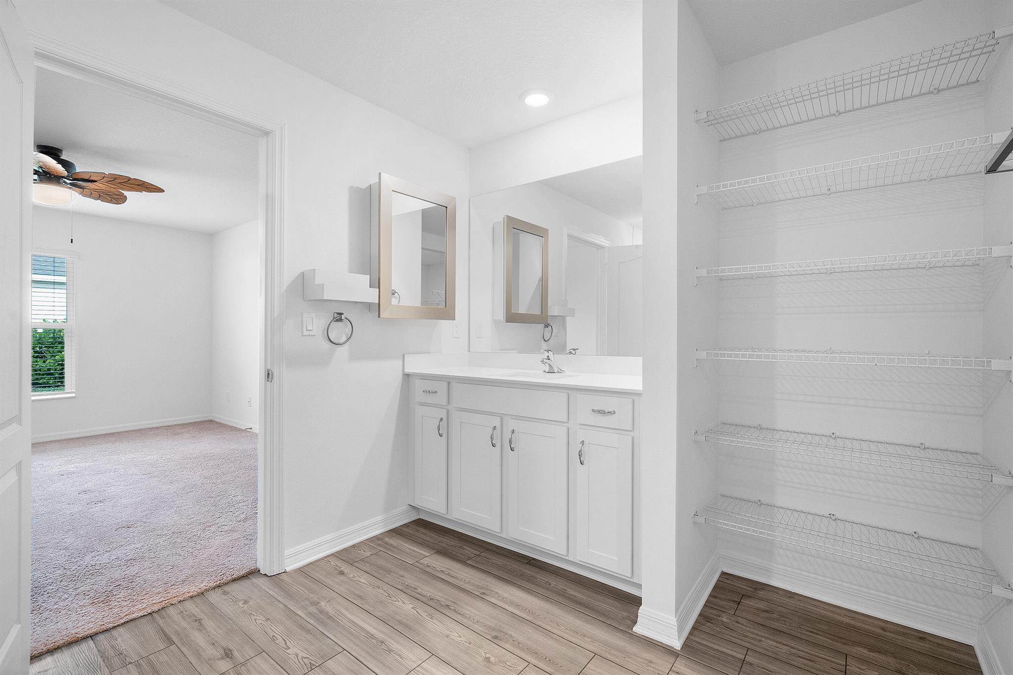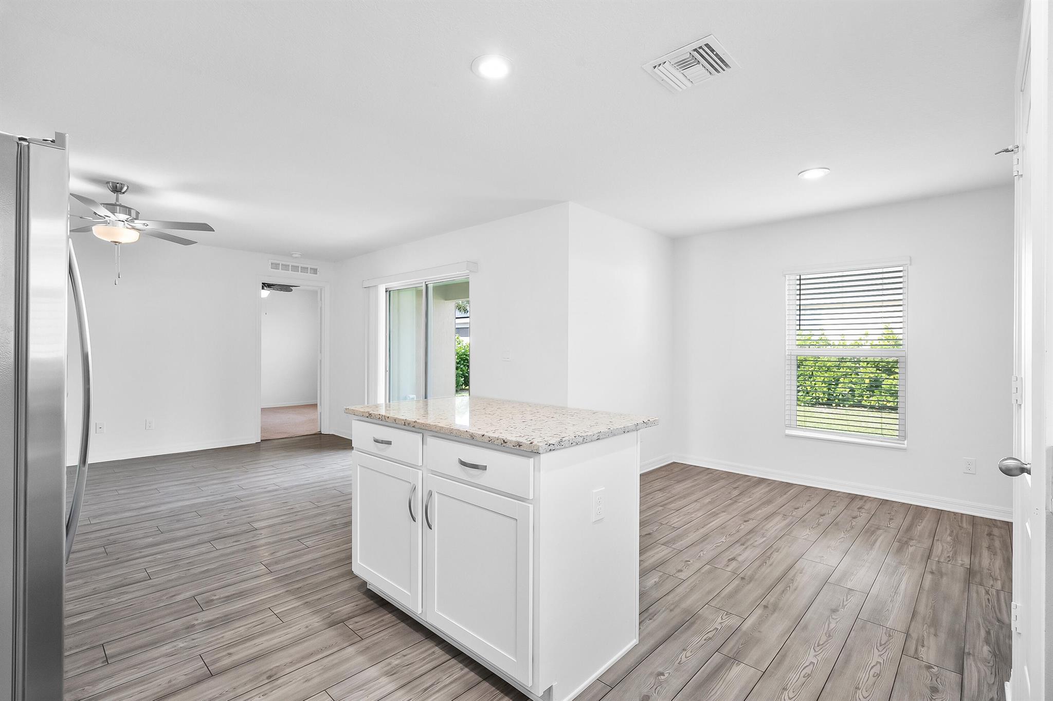 You can no longer build this Amelia floorplan! It's fully SOLD OUT! Upgrades have been added such as ceiling fans, upgraded recessed lighting, glass shower doors, towel bars & medicine cabinets. You already have blinds installed throughout & gutters. The stunning white shaker kitchen, features a granite island overlooking a spacious entertainment area, perfect for gatherings. You're halfway there to installing AC in the garage with QN insulated garage door. You should see the size of the walk in primary closet! It could be a 4th bedroom it's so large! The expansive backyard has scenic clusia bushes planted around the perimeter giving the utmost privacy while you sip your morning coffee on the covered back lanai. Massey has a transferable termite contract & will provide a half price WDO!