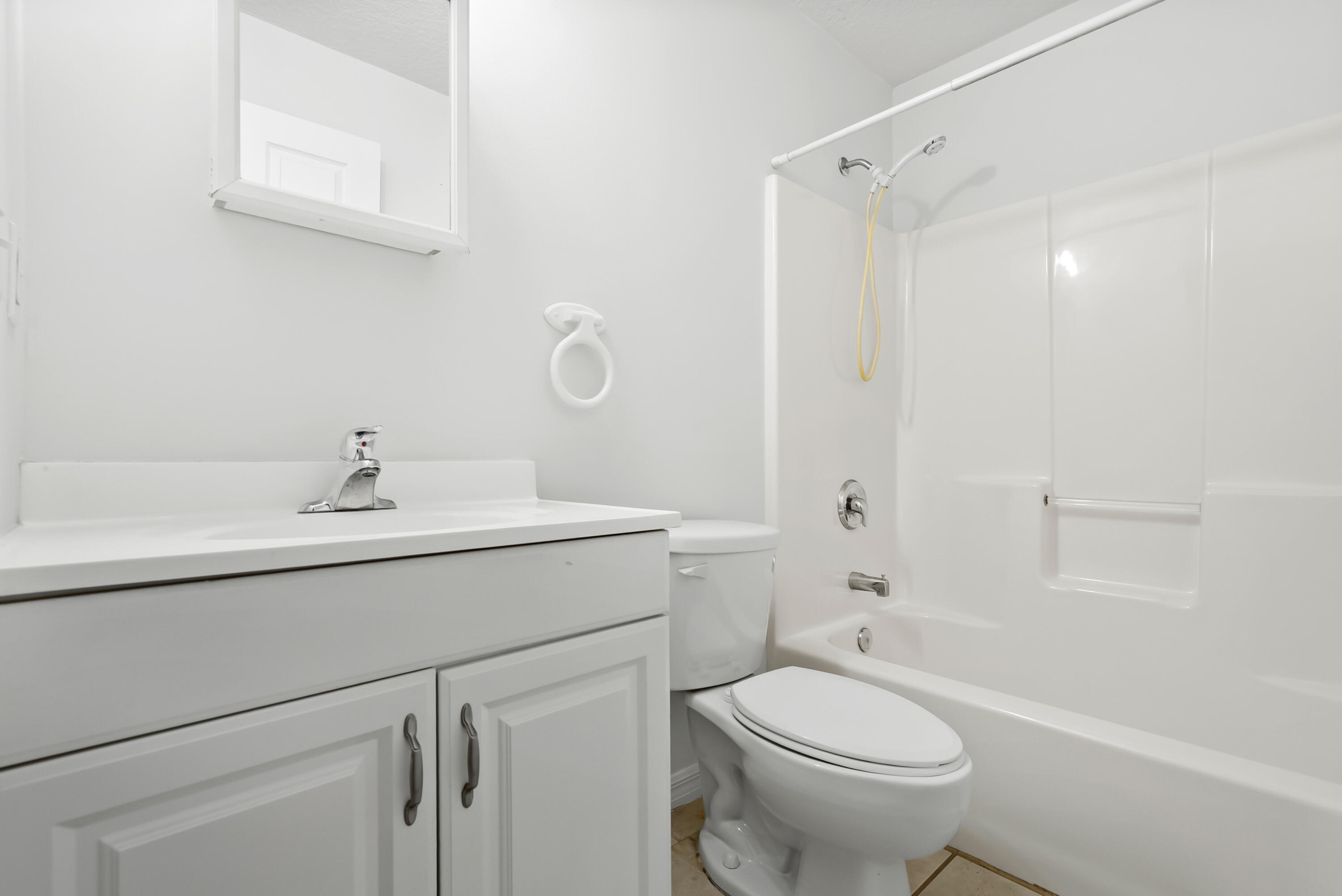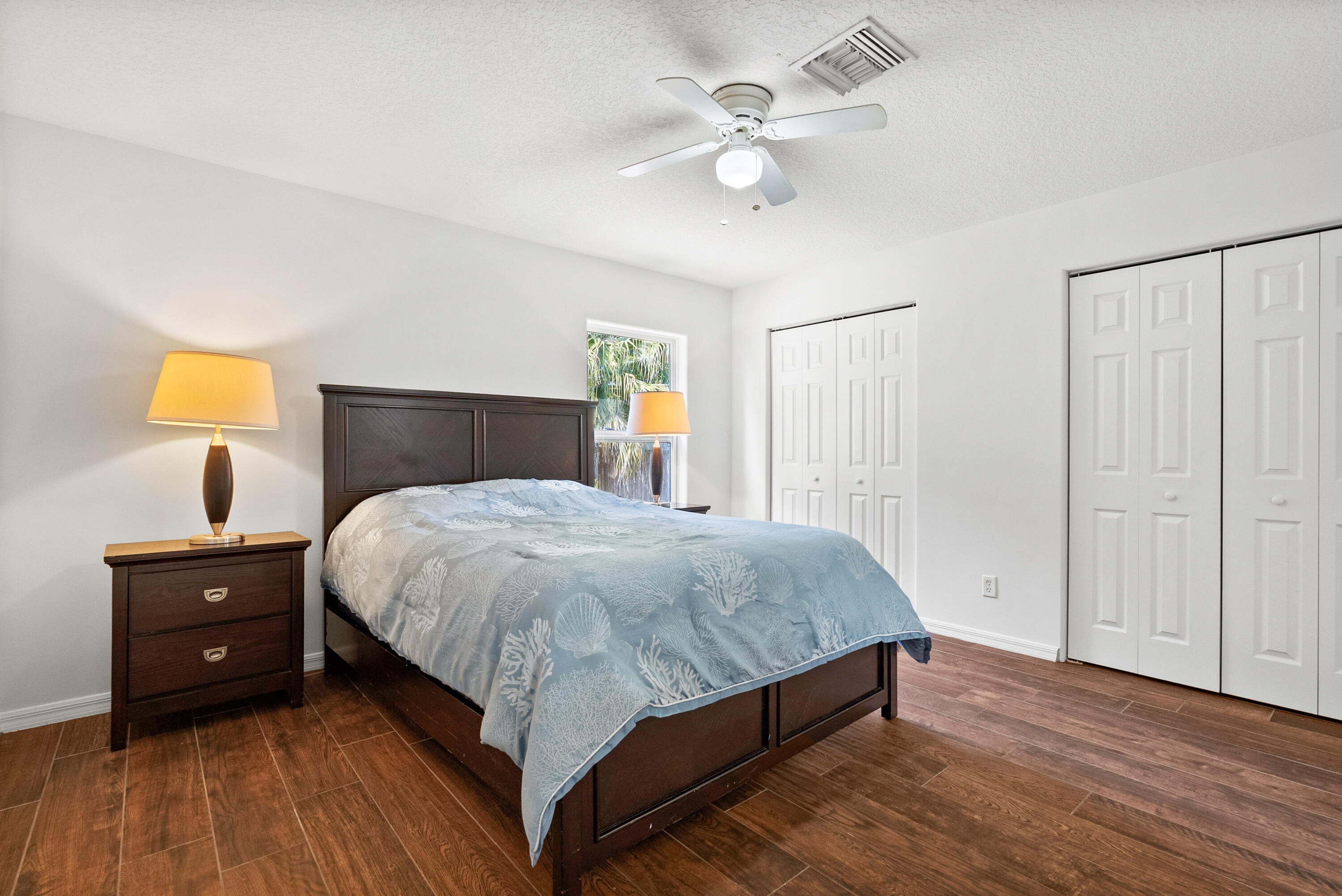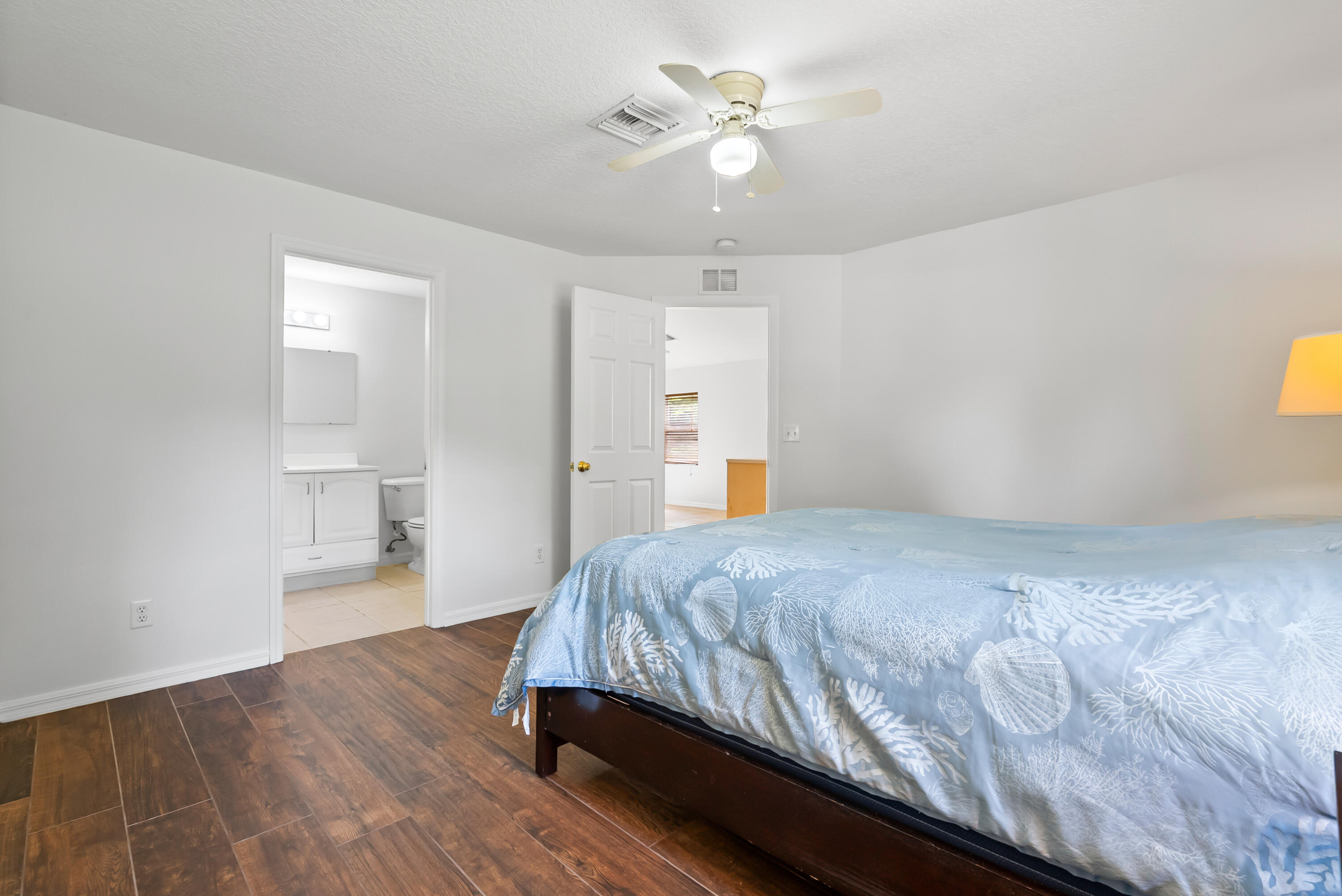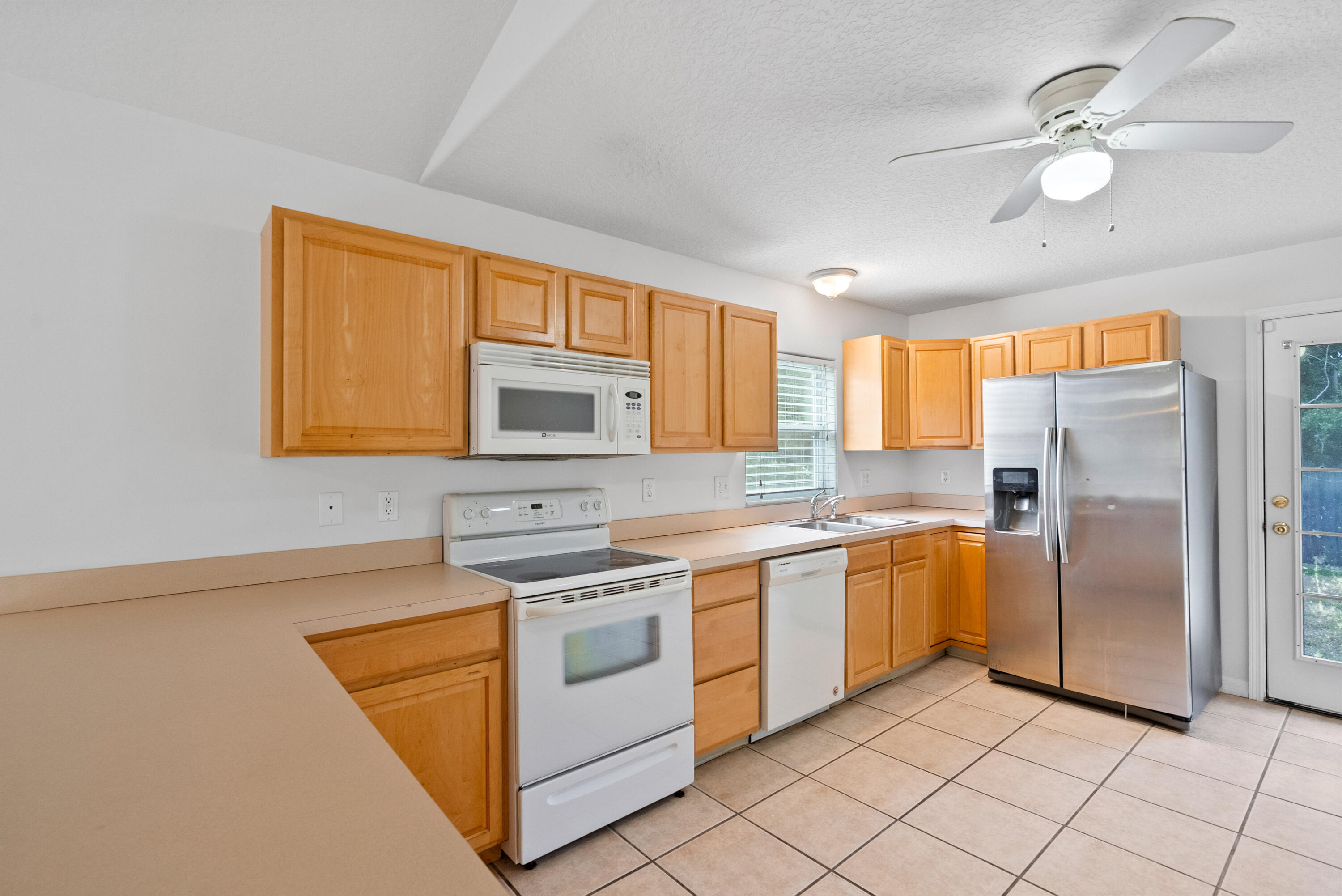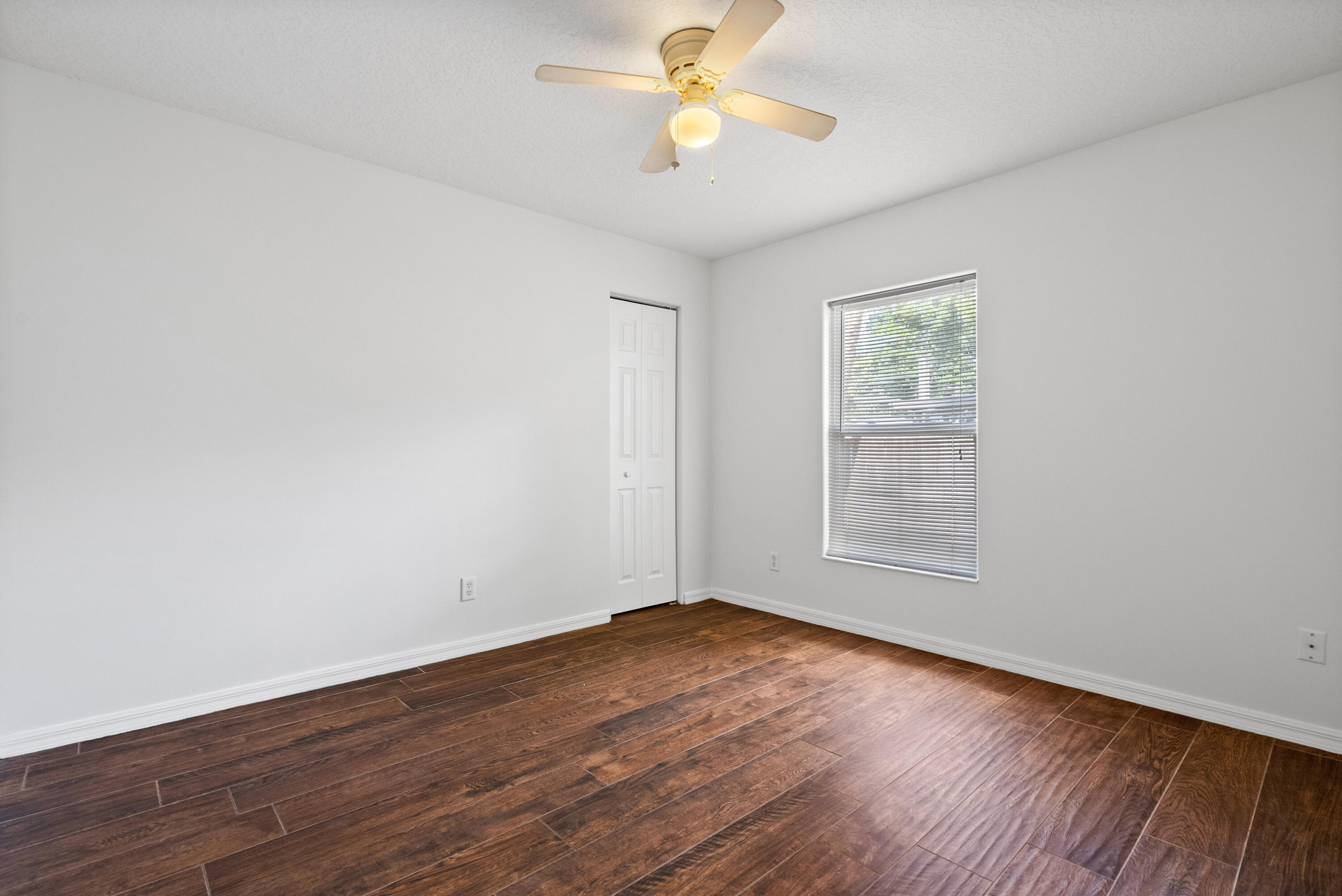 No carpet - tile throughout! This home features stylish wood-look tile flooring in the bedrooms for a clean, modern touch. Enjoy peace of mind with hurricane metal shutters for every opening, helping lower your homeowners insurance. Additional highlights include: Pull-down attic stairs for easy storage. AC only 3 years old. Water heater replaced 5 years ago. Freshly painted interior. Expansive vaulted ceilings enhance the open-concept living space. Covered front porch - perfect for morning coffee or relaxing evening. This home blends comfort, functionality, and style in one beautiful package. Don't miss out on this one!