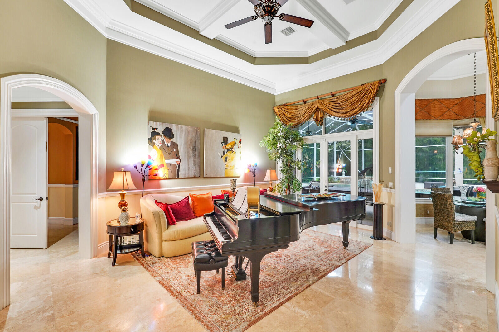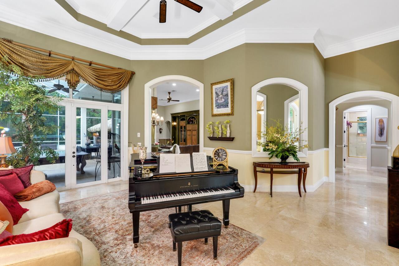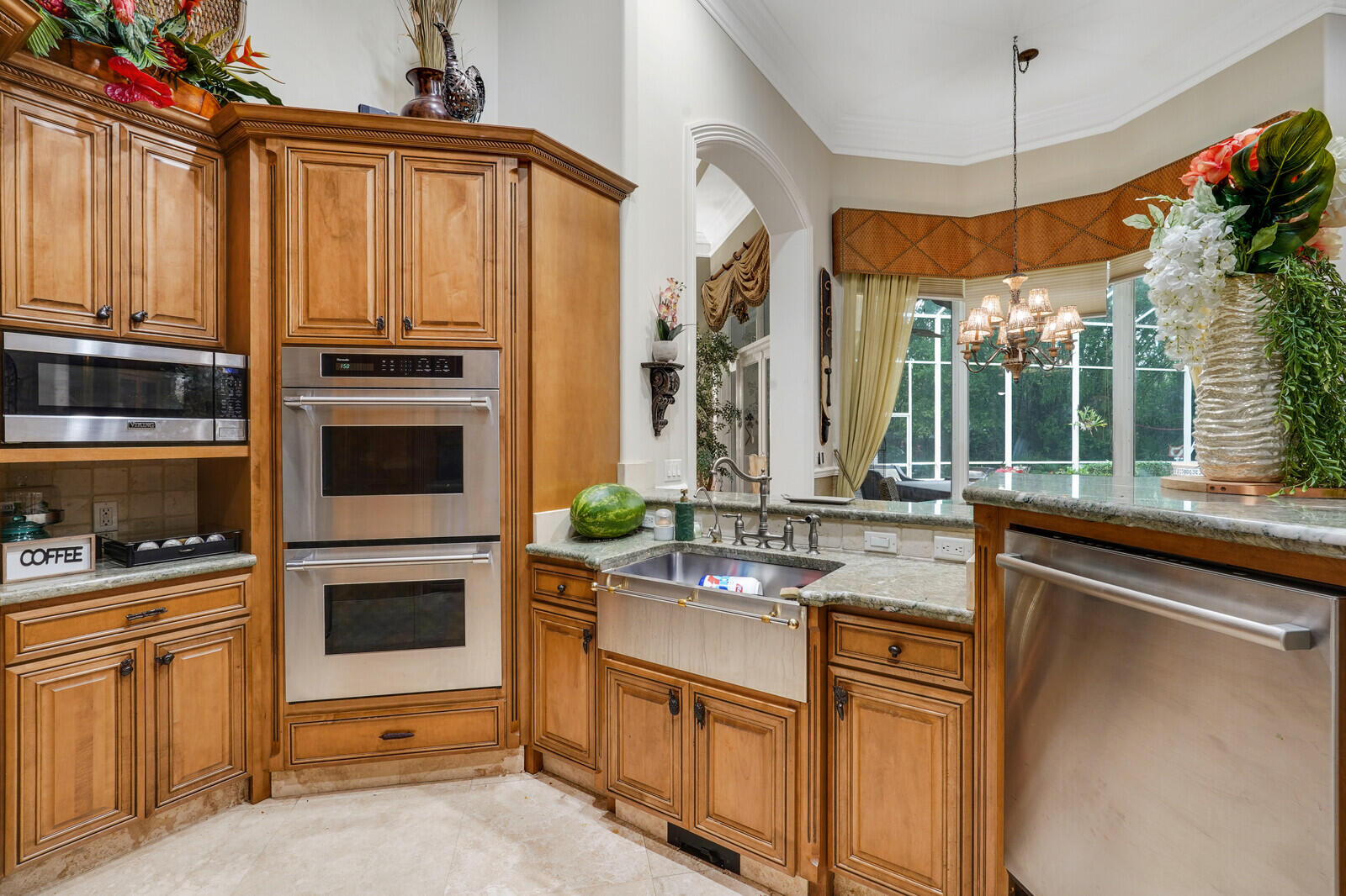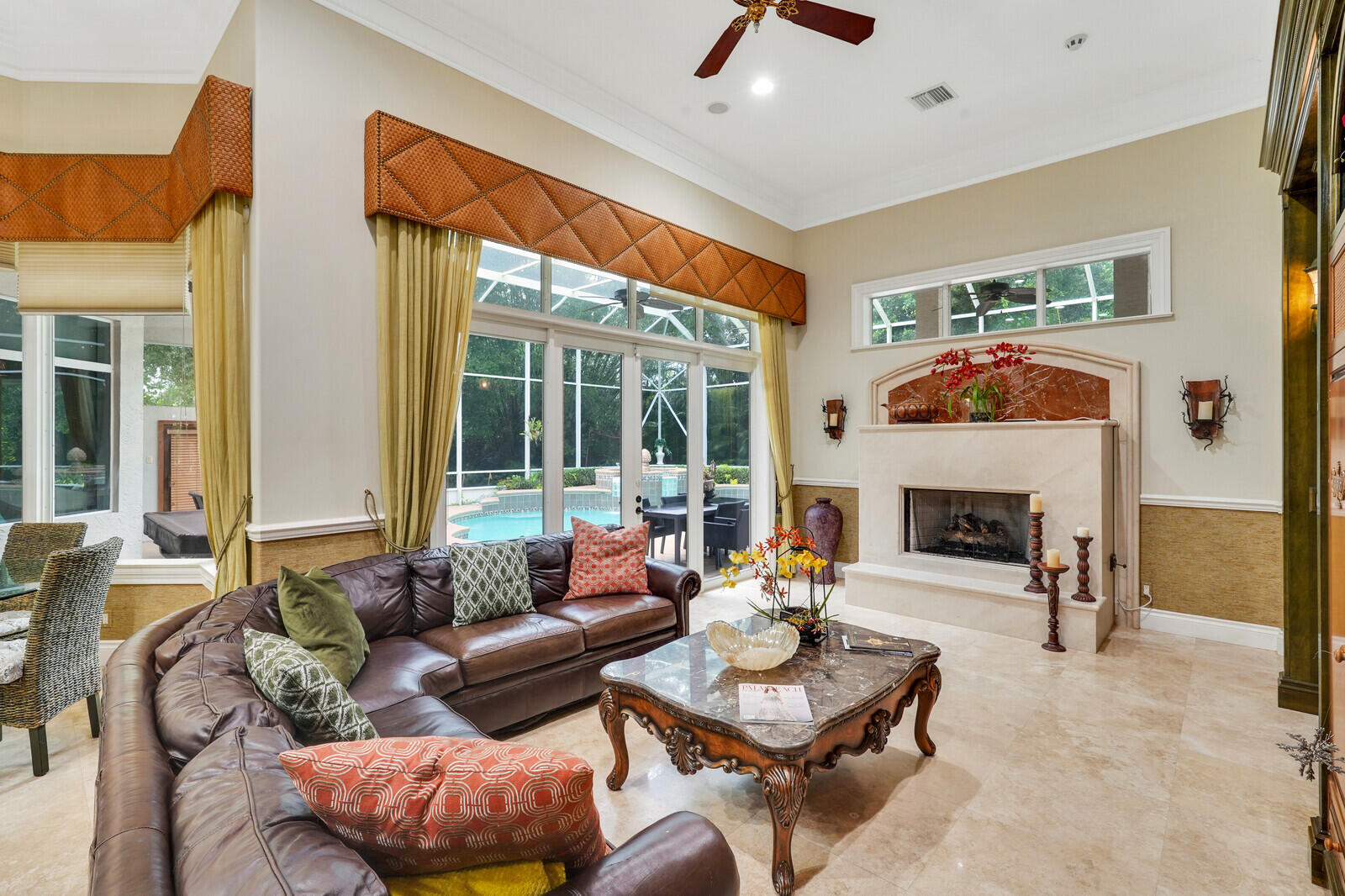 Grand marbled entry, home boasts tray & coffered ceilings, vaulted/cathedral ceilings, Crown molding, formal dining and living room, built in fire place, custom library/office, a Chef's dream kitchen, with elevated dishwasher, double oven, Thermador 6 burner Gas range, granite countertops Tiled Backsplash, custom Stainless Steel Appliances, beautiful custom Cabinets with Molding, Home Theatre room, Split floor plan, Italian Marble floors throughout. Convenience of Impact Windows and Doors, a $100K value in Drapes/custom Window Treatments-that will convey, Whole House Generator, Security Cameras, Sound System. Front load Washer and Dryer, build in Laundry Tub and Laundry Rack, lots of space for storage.