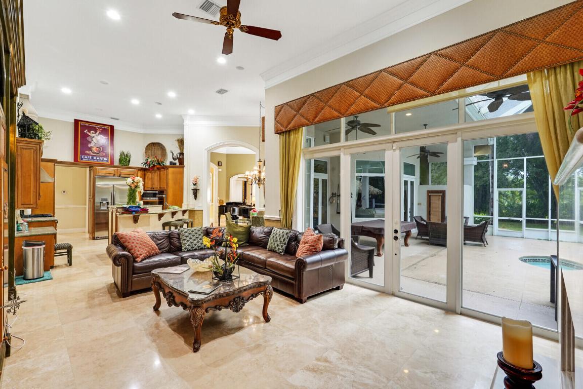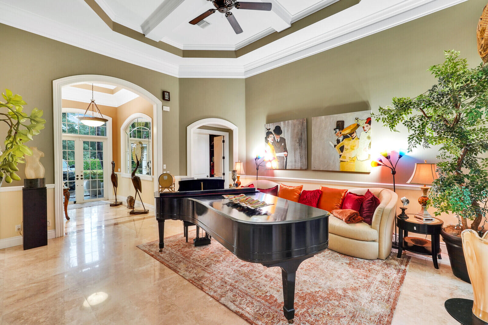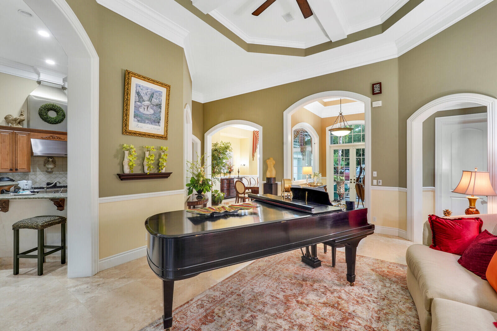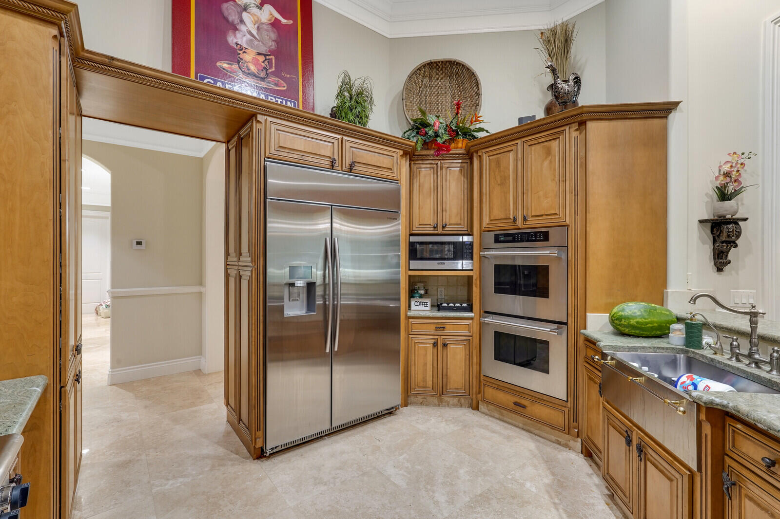 Grand marbled entry, home boasts tray & coffered ceilings, vaulted/cathedral ceilings, Crown molding, formal dining and living room, built in fire place, custom library/office, a Chef's dream kitchen, with elevated dishwasher, double oven, Thermador 6 burner Gas range, granite countertops Tiled Backsplash, custom Stainless Steel Appliances, beautiful custom Cabinets with Molding, Home Theatre room, Split floor plan, Italian Marble floors throughout. Convenience of Impact Windows and Doors, a $100K value in Drapes/custom Window Treatments-that will convey, Whole House Generator, Security Cameras, Sound System. Front load Washer and Dryer, build in Laundry Tub and Laundry Rack, lots of space for storage.