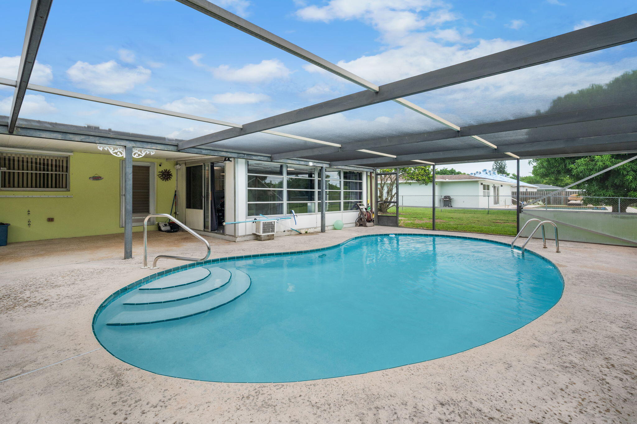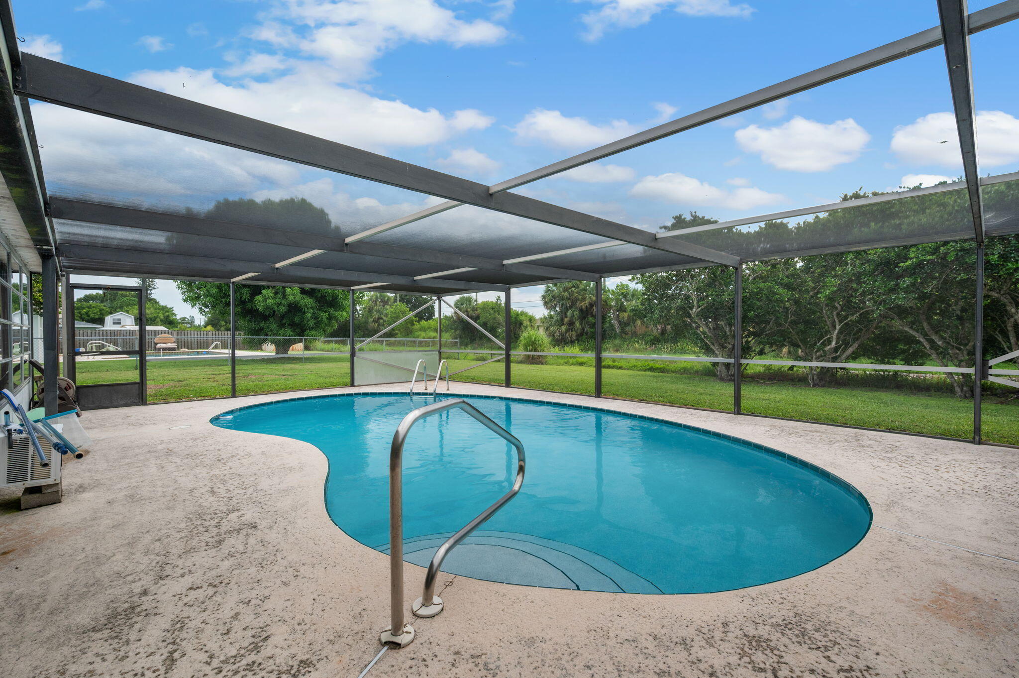 Welcome home! CBS 3 bedroom, 2 bath pool property has been freshly renovated and waiting for you. Enter into a light-filled great room that flows effortlessly into a dining space, ideal for entertaining. Crisp neutral paint palette inside, complemented by updated baseboards, and luxury vinyl plank floors throughout the main living area. Large Florida room with all new paint and flooring. Oversized screened pool area with drainage canal and mature trees in the back offers lots of privacy. All brand new stainless steel kitchen appliances. New pool pump and solar heat for the pool. Tankless water heater! Resurfaced and refreshed bathrooms with contemporary vanities. Generac system! This home is centrally located with sidewalks, in a fantastic neighborhood. Schedule your showing today!