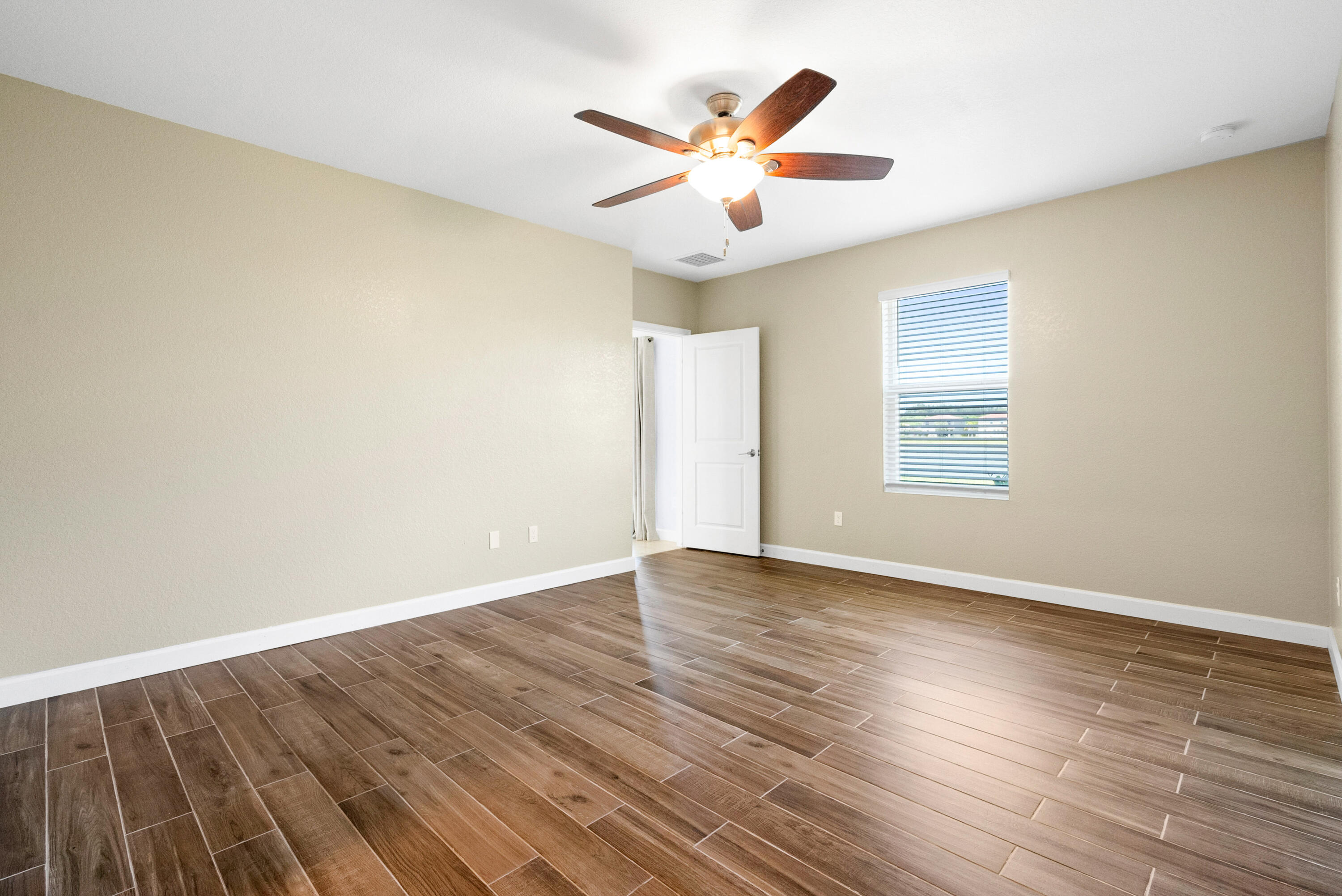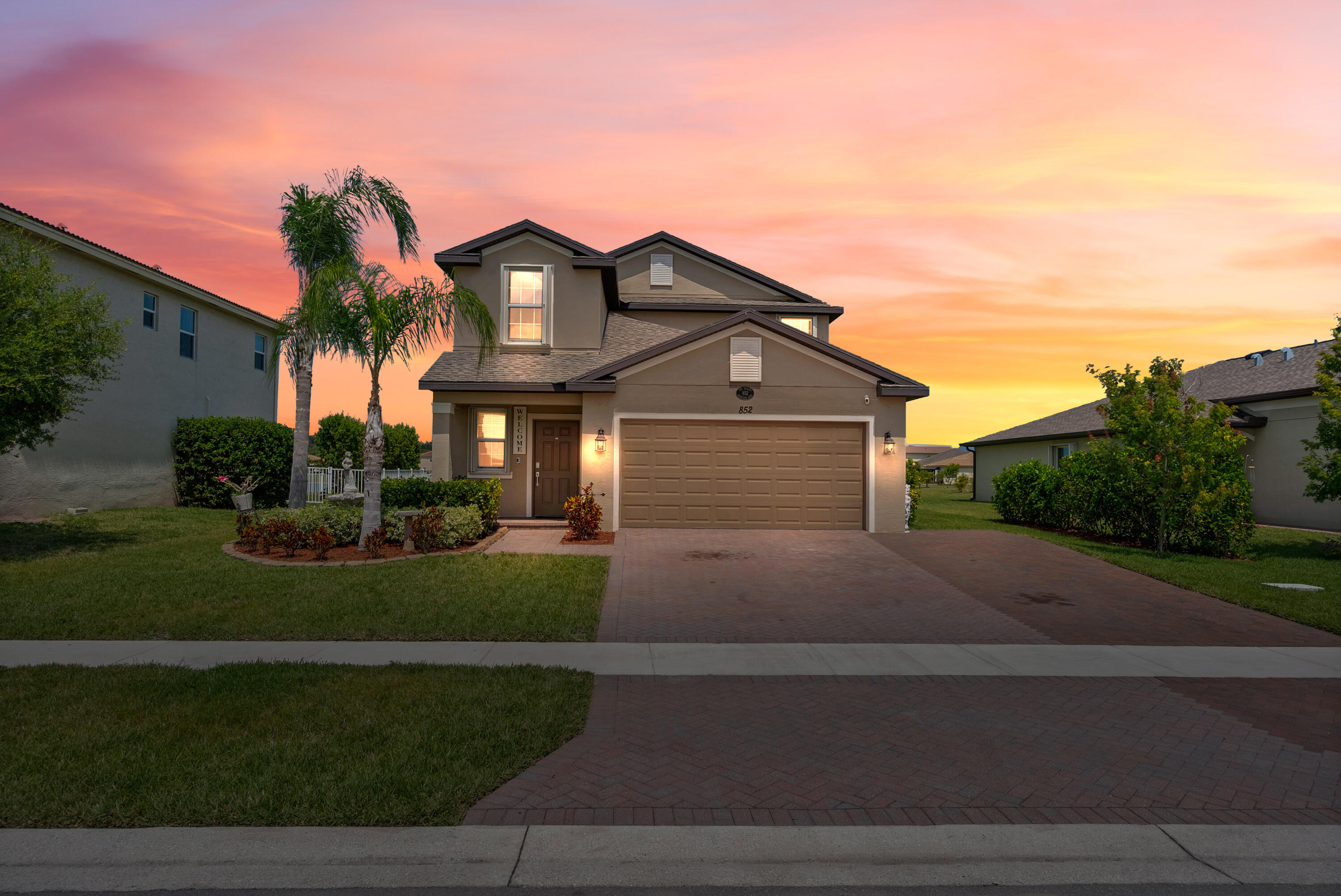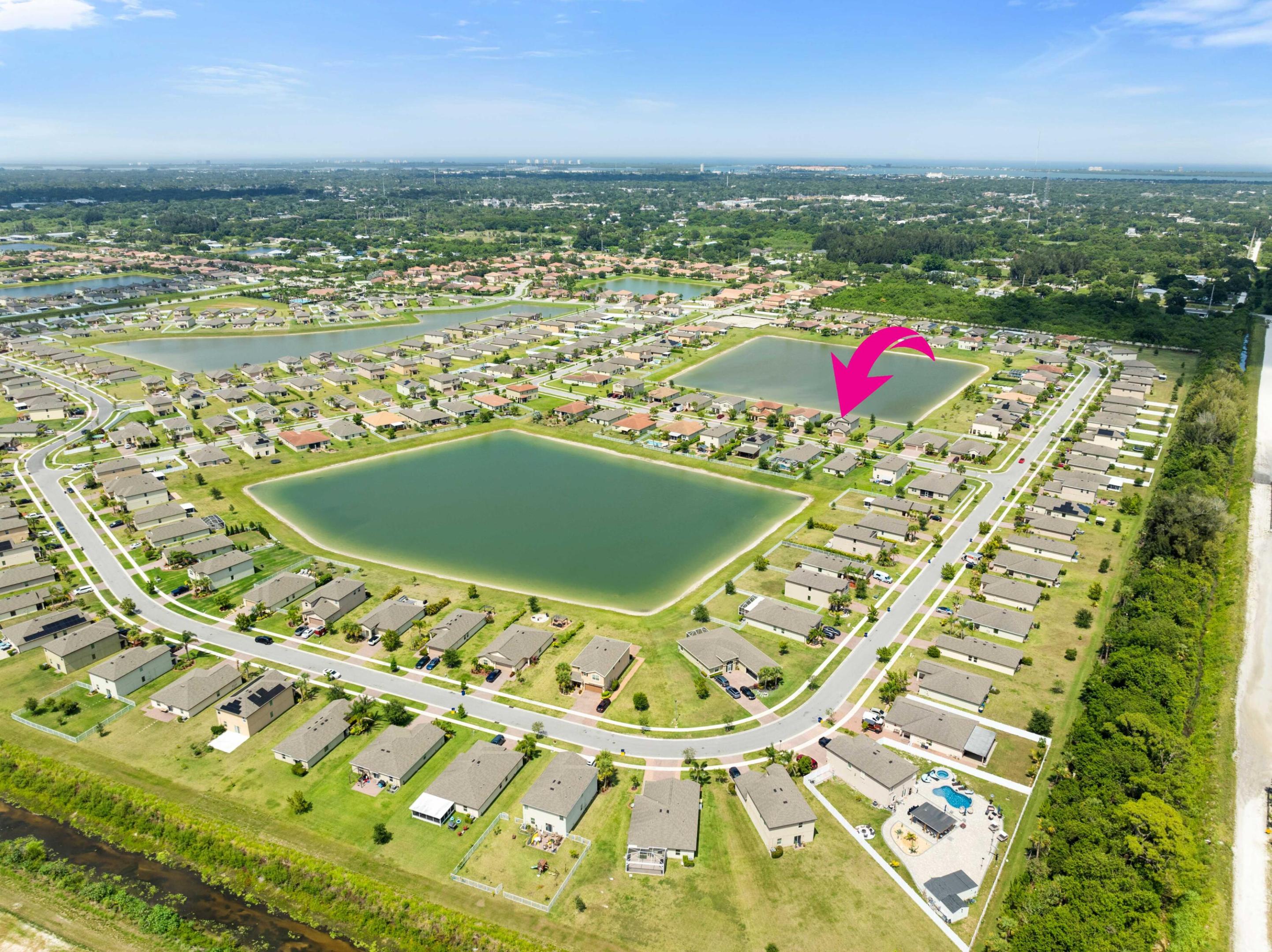 Welcome to this premiere Mediterranean style home built by Lennar in 2020 with 5 years left of structural warranties. Located in the gated community of Bent Creek, just 3 miles to Starbucks, wawa, chipotle & a mere 6 miles to the beach! This is the Columbia floorplan, a true 5-bedroom, 2 1/2 bathroom home plus loft that offers plenty of space on the lake. The kitchen boasts SS Appliances with granite countertops, a chef's island, oversized SS sink & a custom built out pantry. First floor owner's suite features a grand bathroom w/dual sinks, separate toilet room & a custom built-in closet. Enjoy a turnkey home with hurricane accordions for all windows! Concrete block construction on both levels. Expanded paver driveway! Professional epoxied garage floors. Rain Bird Sprinkler system included!