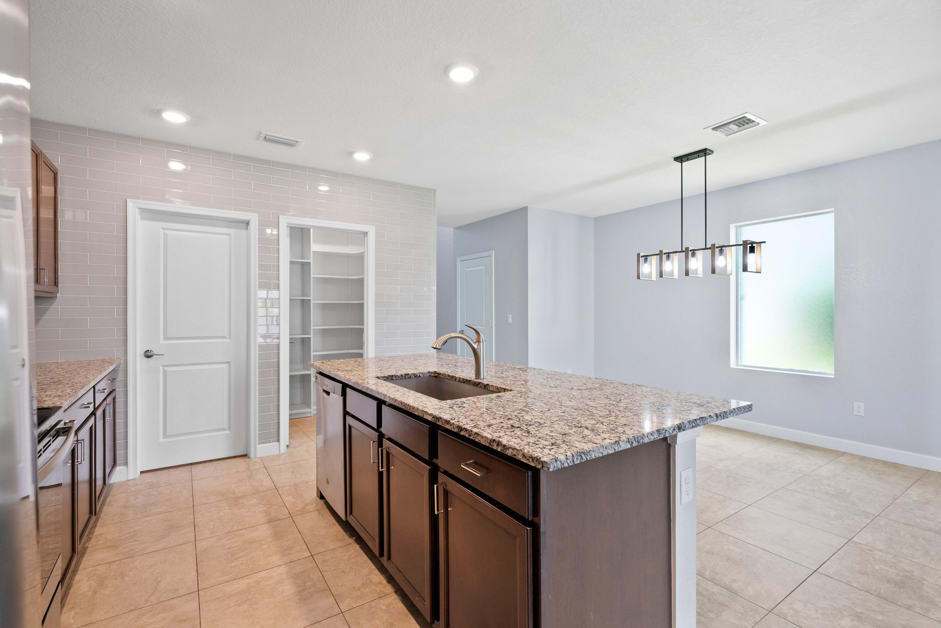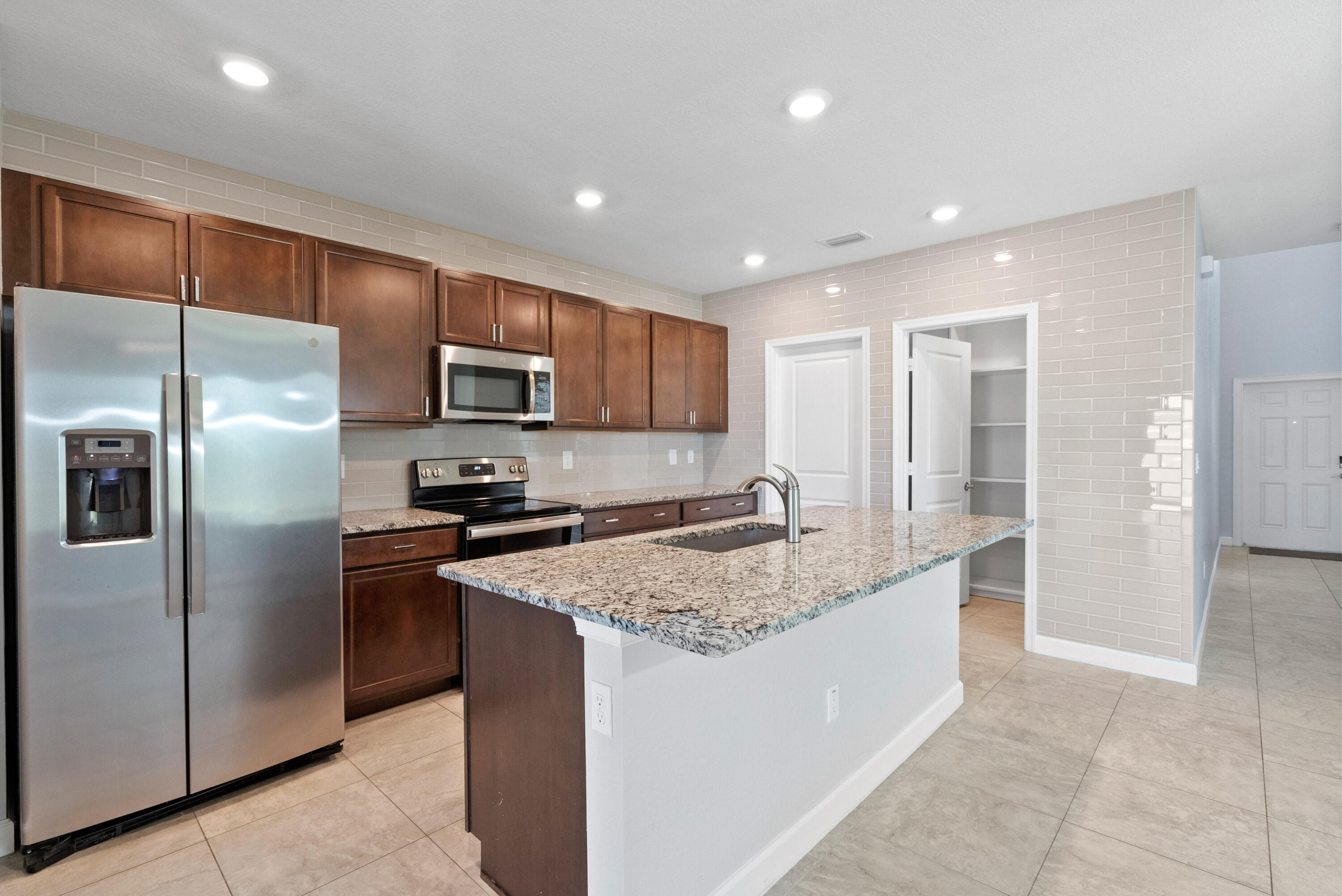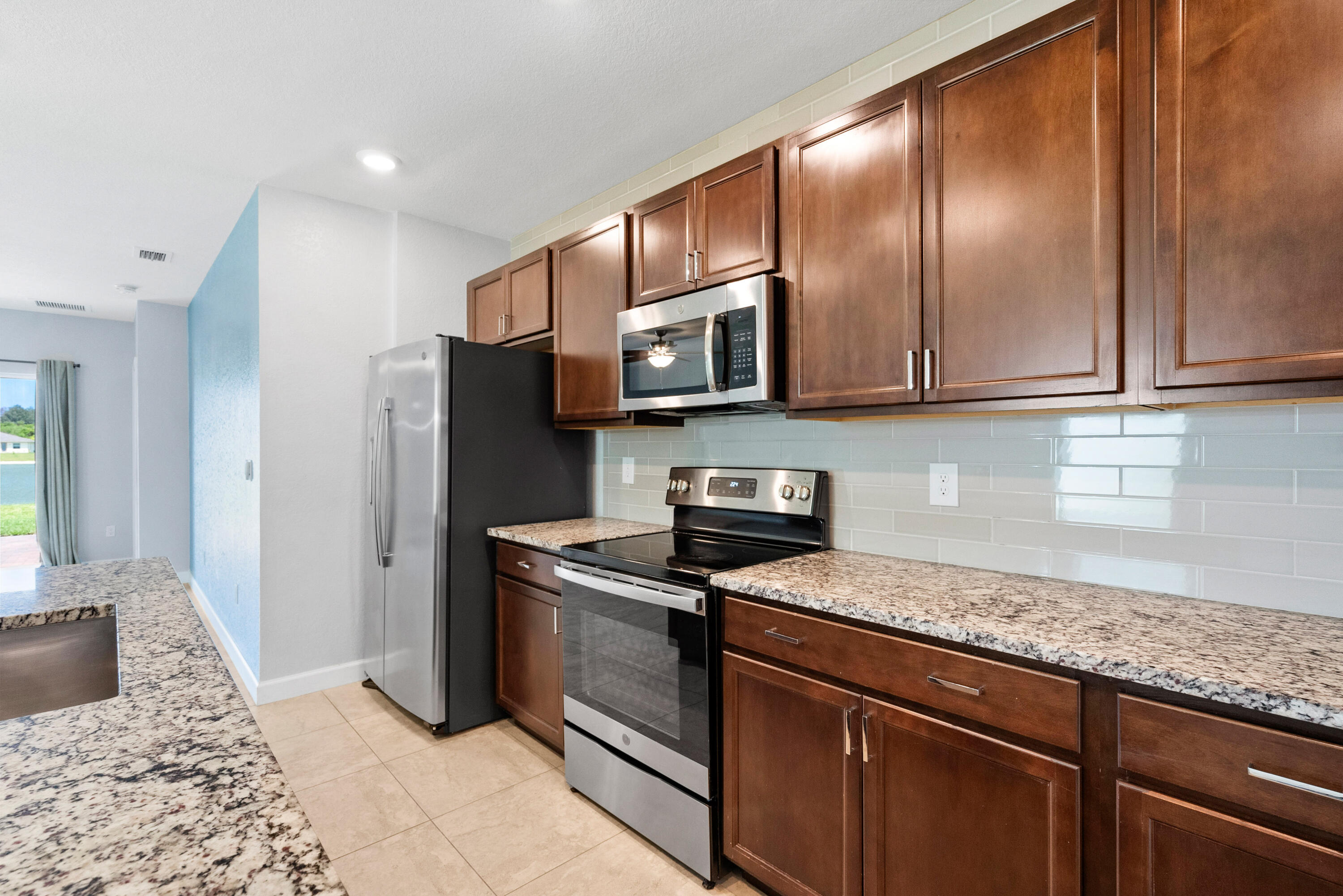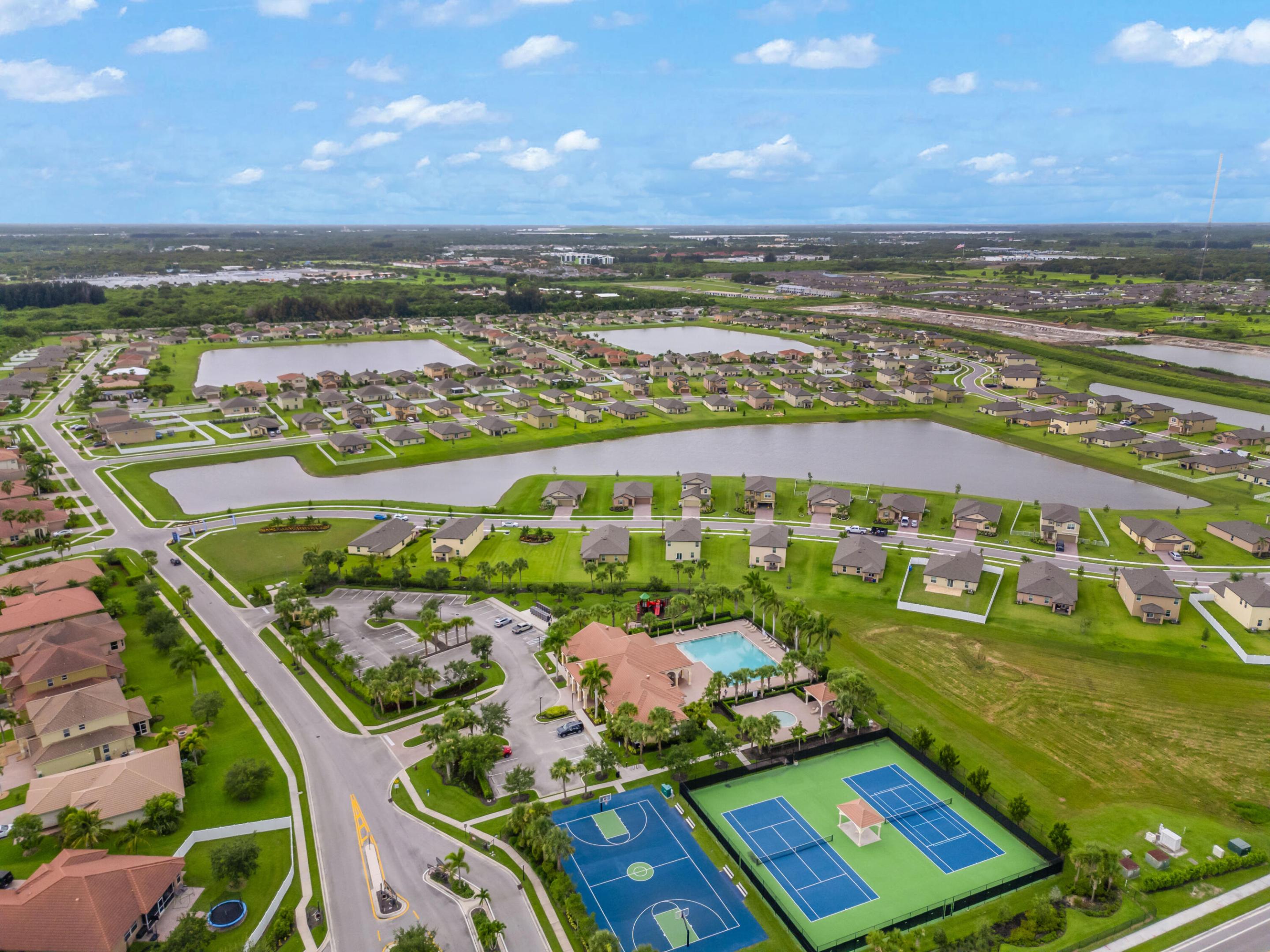 Welcome to this premiere Mediterranean style home built by Lennar in 2020 with 5 years left of structural warranties. Located in the gated community of Bent Creek, just 3 miles to Starbucks, wawa, chipotle & a mere 6 miles to the beach! This is the Columbia floorplan, a true 5-bedroom, 2 1/2 bathroom home plus loft that offers plenty of space on the lake. The kitchen boasts SS Appliances with granite countertops, a chef's island, oversized SS sink & a custom built out pantry. First floor owner's suite features a grand bathroom w/dual sinks, separate toilet room & a custom built-in closet. Enjoy a turnkey home with hurricane accordions for all windows! Concrete block construction on both levels. Expanded paver driveway! Professional epoxied garage floors. Rain Bird Sprinkler system included!
